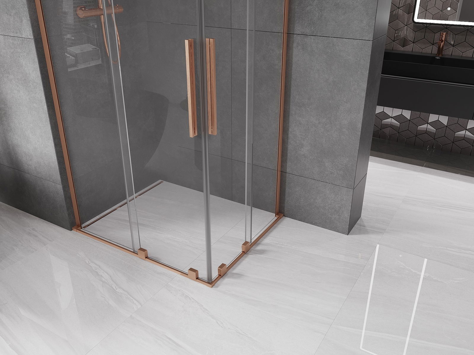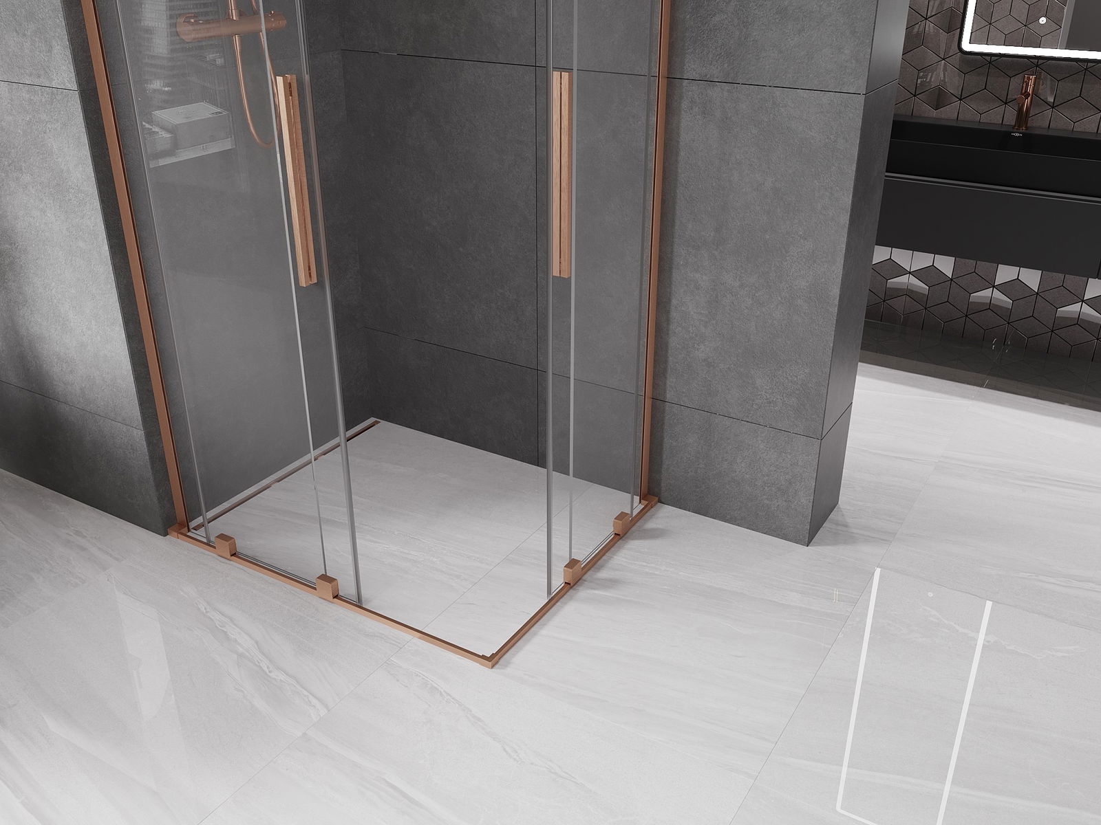 Mexen Velar L Duo Posuvná sprchová kabína 100 x 90 cm, transparentná, brúsená meď - 871-100-090-02-03-65