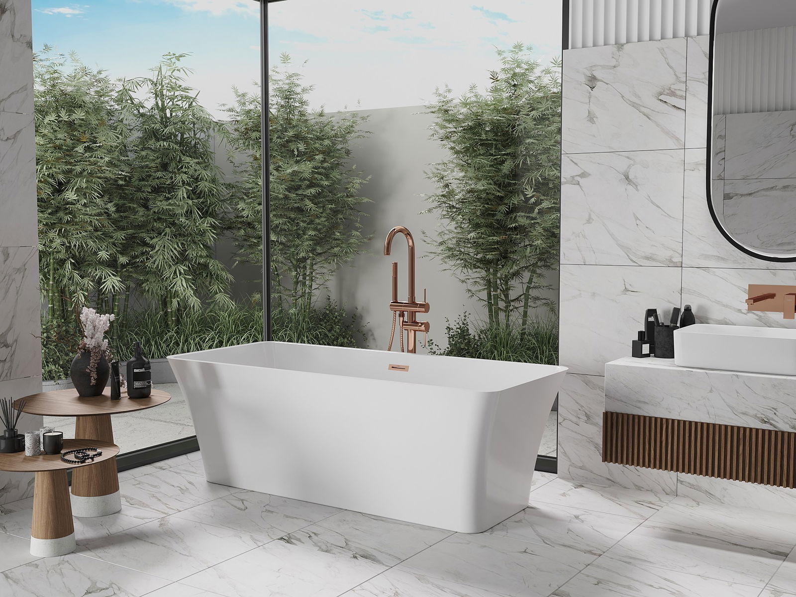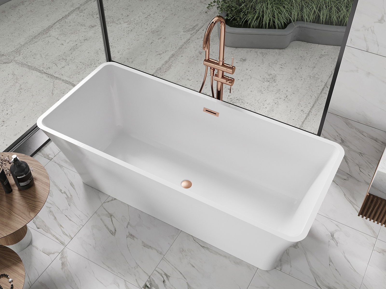 Mexen Tonia voľne stojaca vaňa 170 x 75 cm, biela, prepadová meď kartáčovaná - 52171707500-65
