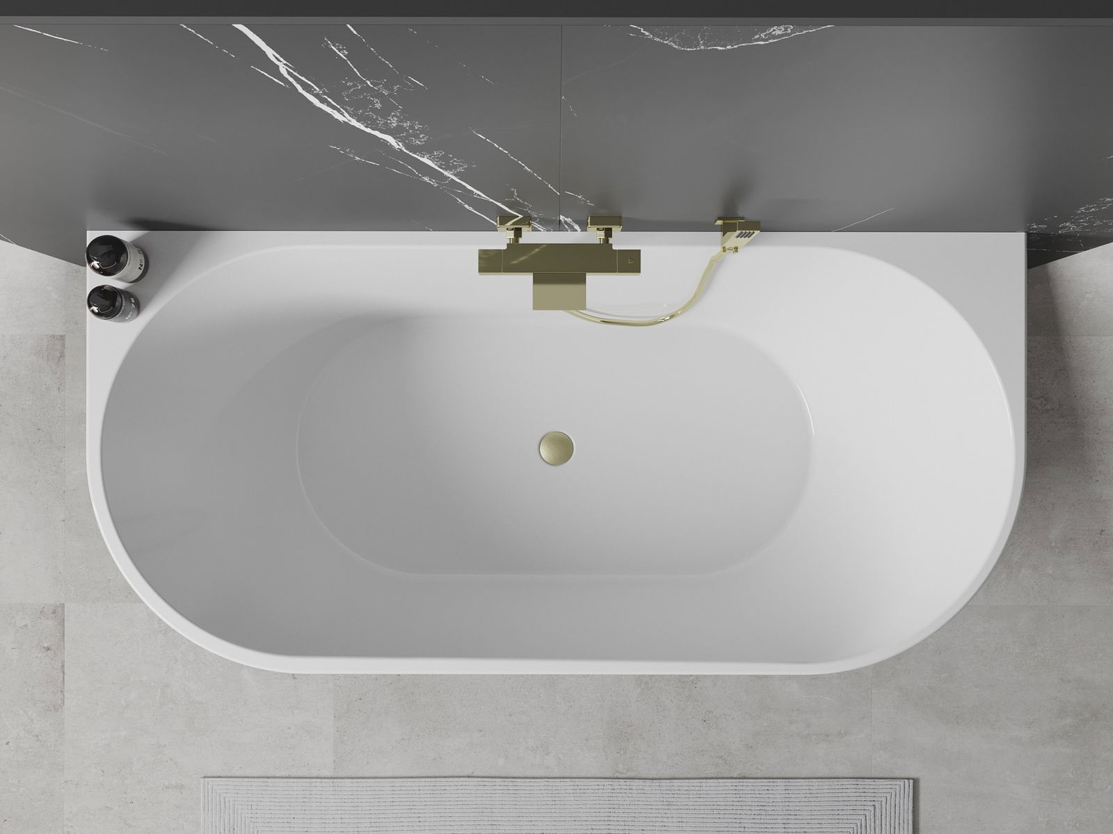 Mexen Oval voľne stojaca vaňa pri stene 140 x 75 cm, biela, prepad zlatý brúsený - 52671407500-55