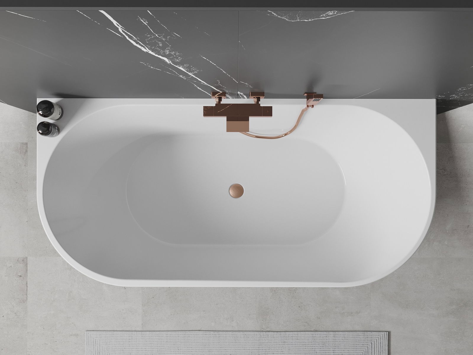 Mexen Oval voľne stojaca pri stene vaňa 140 x 75 cm, biela, prepadová matná meď - 52671407500-65