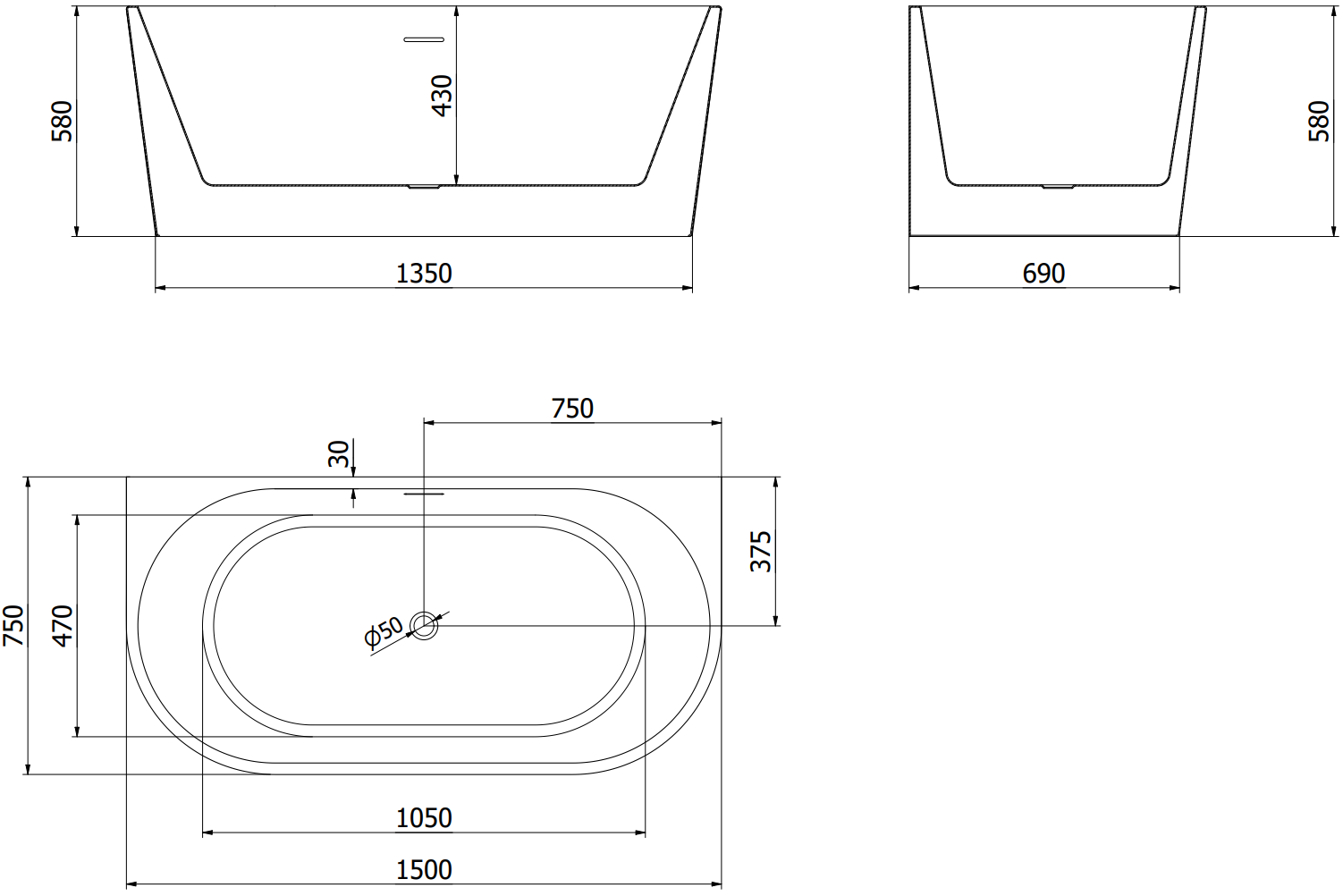Oválna voľne stojaca vaňa v bielej farbe je ideálnym riešením do vašej kúpeľne. S rozmermi 150 x 75 cm, výškou 58 cm a hĺbkou 45 cm ponúka komfortný kúpeľ. Vyrobená zo sanitárneho akrylu, poskytuje nielen elegantný vzhľad, ale aj odolnosť voči UV žiareniu a matovaniu. Povrchová úprava v ružovom zlate jej dodáva výnimočný charakter. Vaňa má prepadový otvor a je jednoduchá na montáž pri stene, čo z nej robí praktickú voľbu pre každý dom.