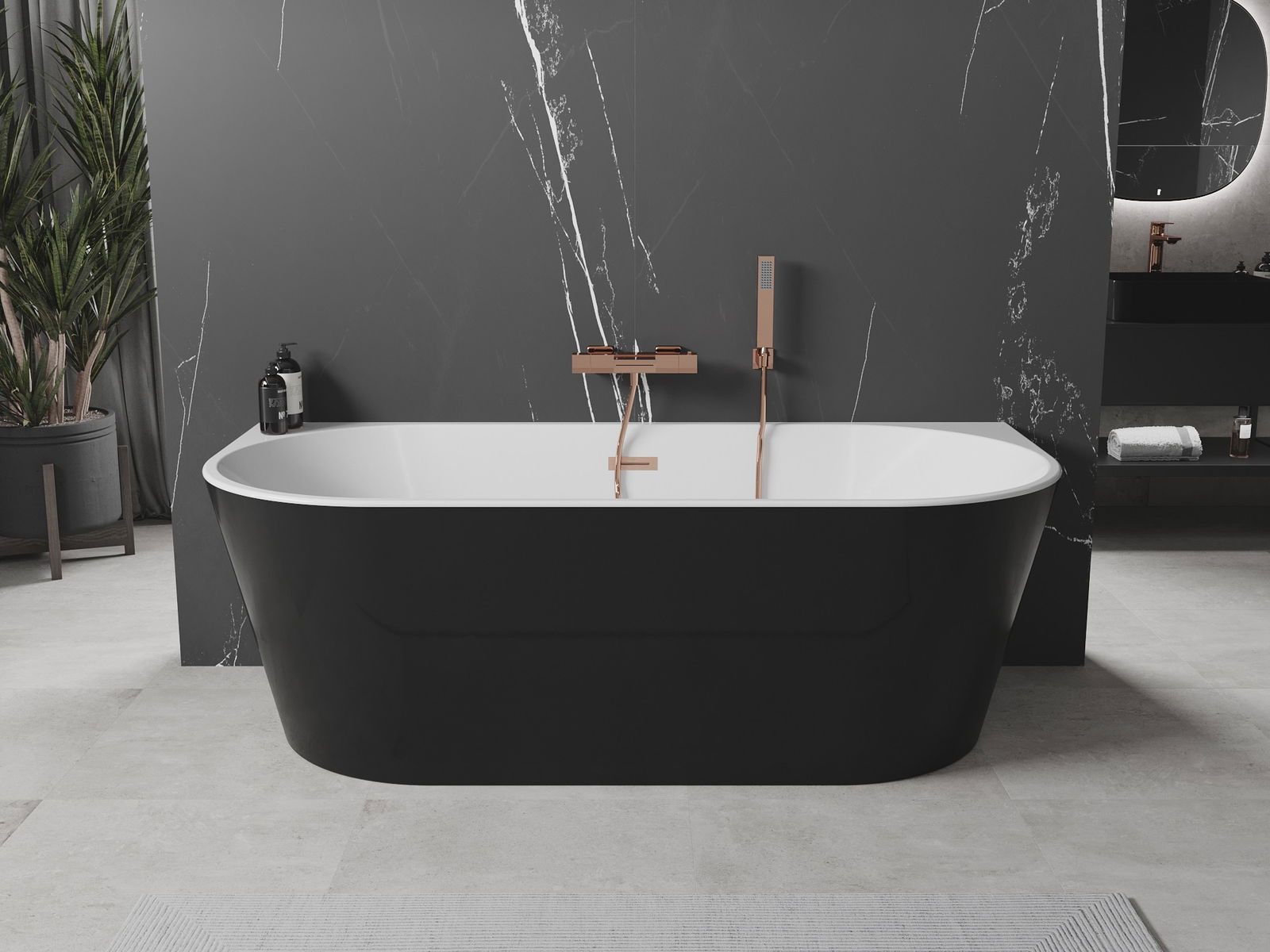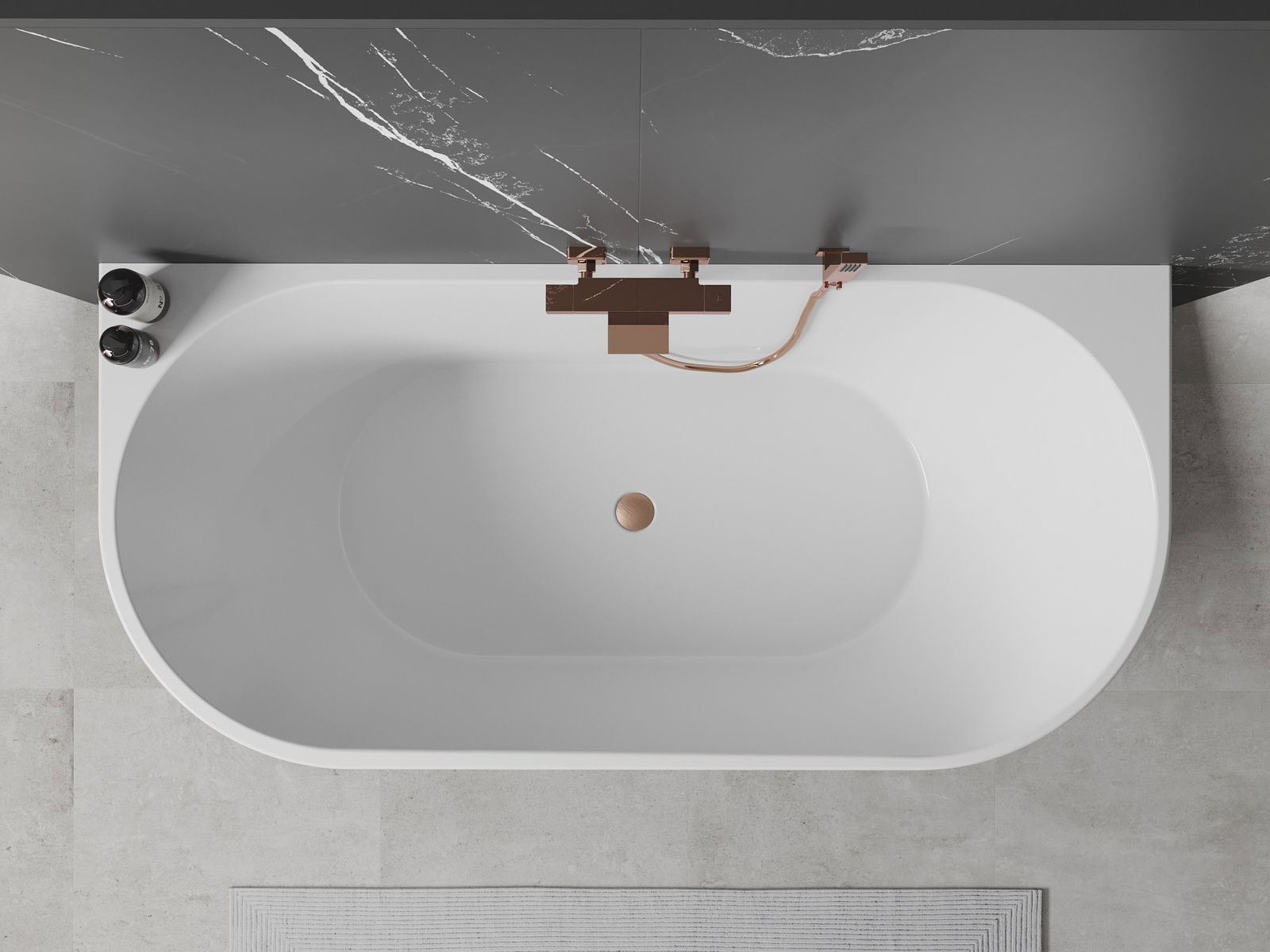 Mexen Oval voľne stojaca vaňa pri stene 150 x 75 cm, biela/čierna, prepad brúsená meď - 52671507575-65