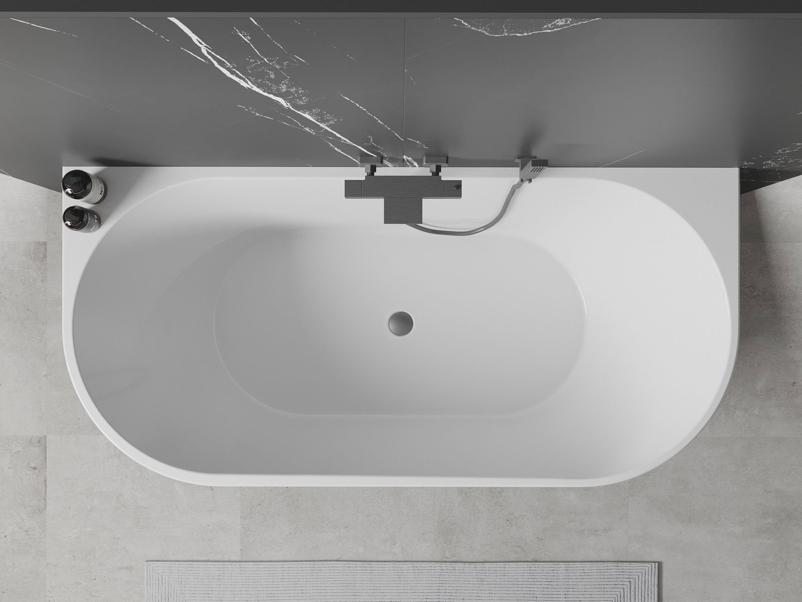 Mexen Oval voľne stojaca vaňa pri stene 170 x 80 cm, biela/čierna, prepad gun metal - 52671708075-95