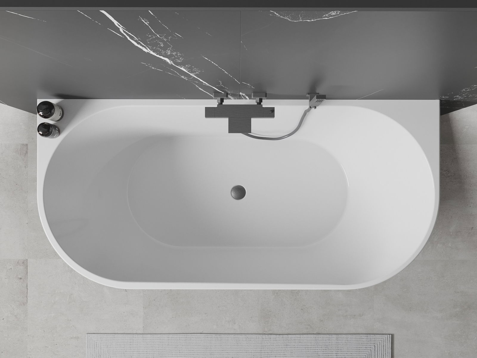 Mexen Oval voľne stojaca vaňa pri stene 180 x 80 cm, biela, prepad gun gray brúsený - 52671808000-66