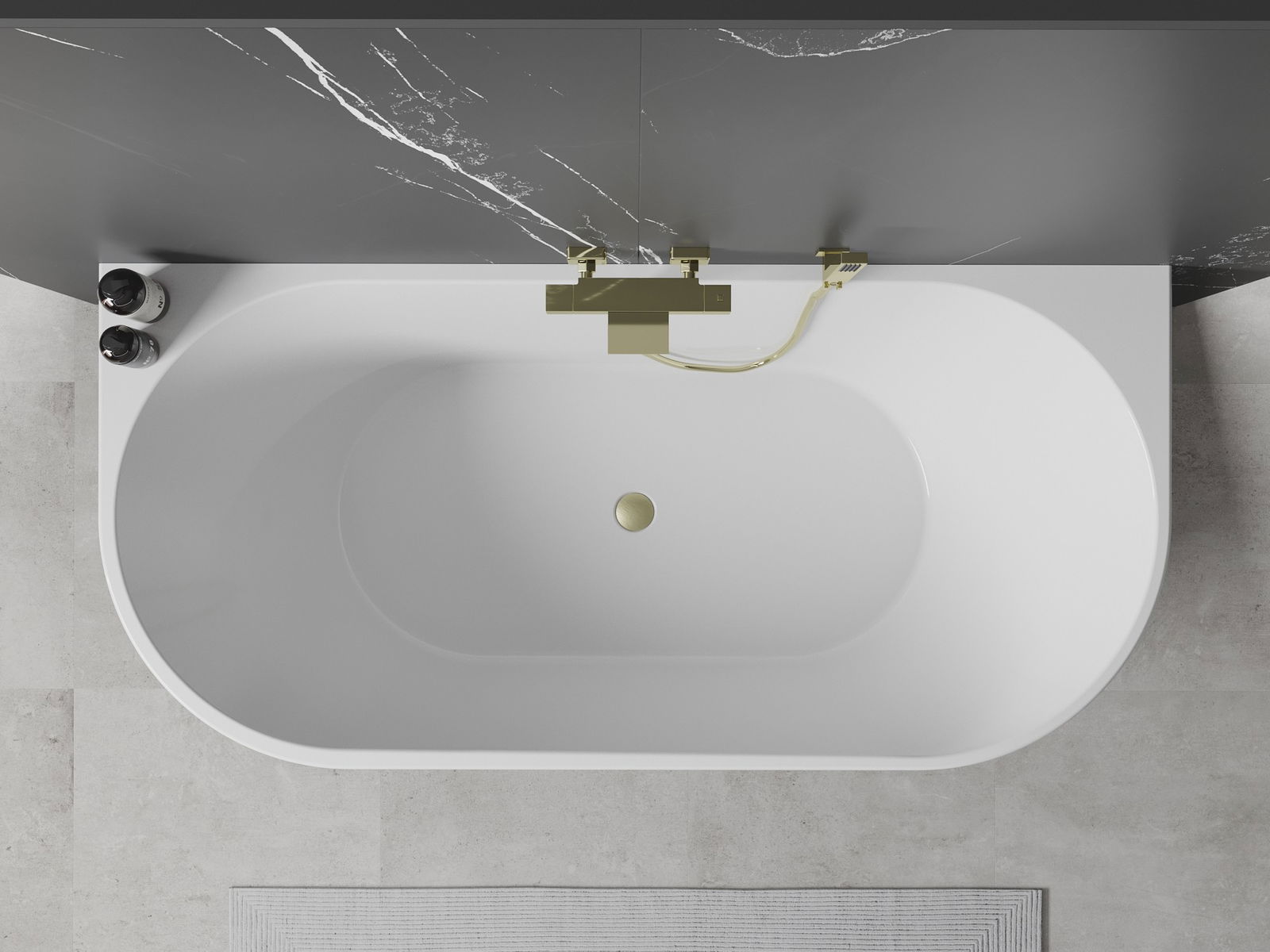 Mexen Oval voľne stojaca vaňa pri stene 180 x 80 cm, biela/čierna, prepad zlatý kartáčovaný - 52671808075-55