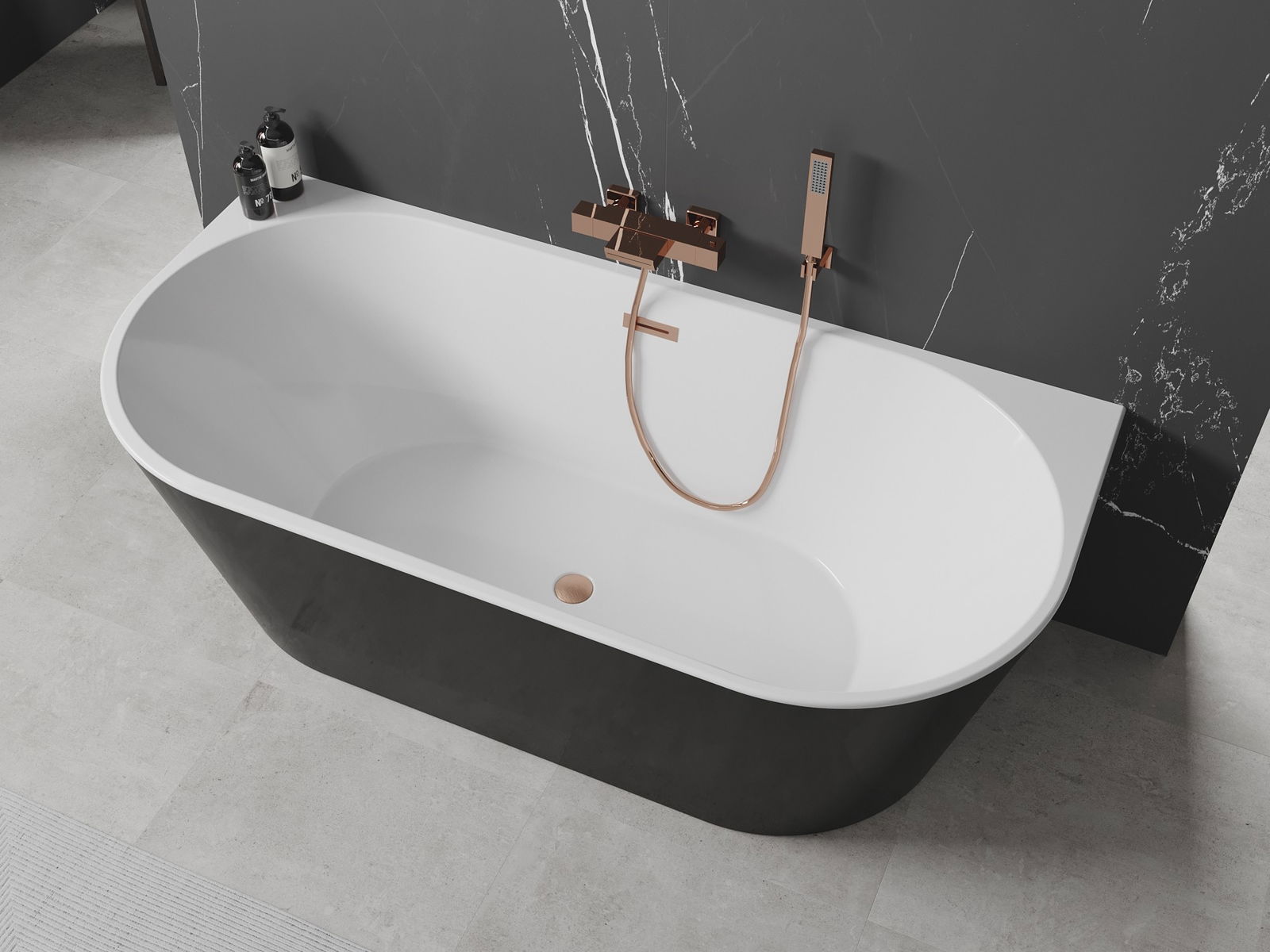 Mexen Oval Samostatne stojaca vaňa pri stene 180 x 80 cm, biela/čierna, prepad kartáčovaná meď - 52671808075-65