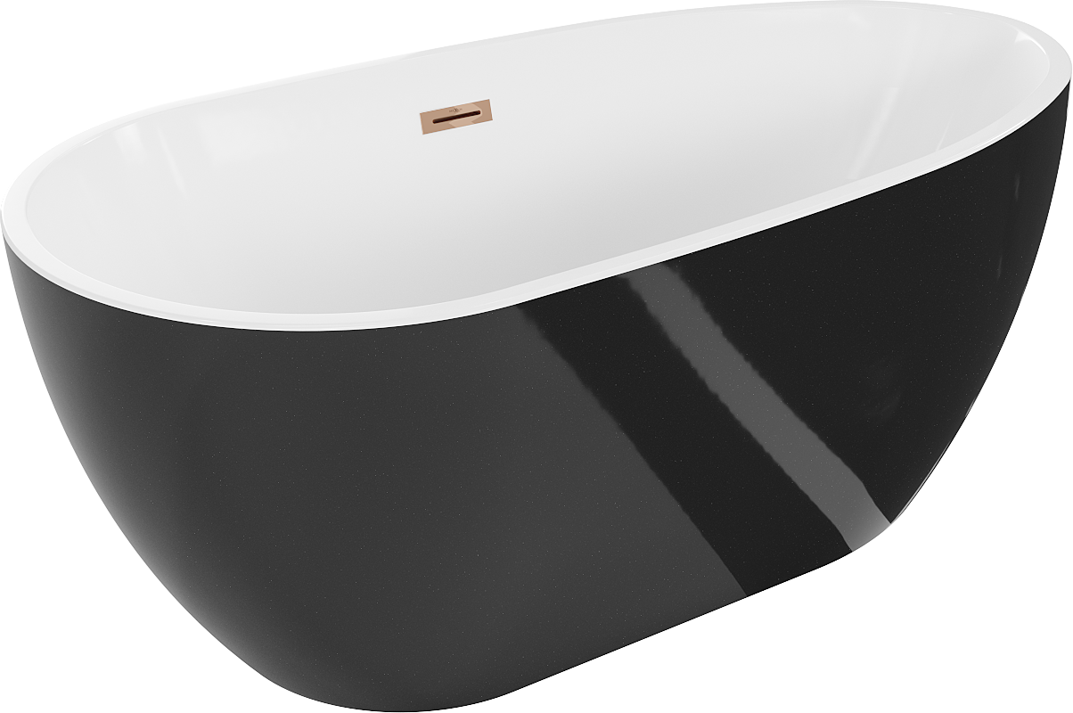 Mexen Eos je voľne stojaca vaňa s rozmermi 170 x 75 cm, ideálna pre moderné kúpeľne. Vyrobená zo sanitárneho akrylu, garantuje trvanlivosť a jednoduchosť údržby. Oválny tvar a elegantná bielo-čierna farba dokonale zapadajú do každého interiéru. Štýlový povrch v ružovom zlate pridáva luxusný akcent. Vaňa je vybavená prepadom a odtokom uprostred, čo zvyšuje komfort používania. Navyše, v balení sa nachádza sifón a uzáver klik klak.