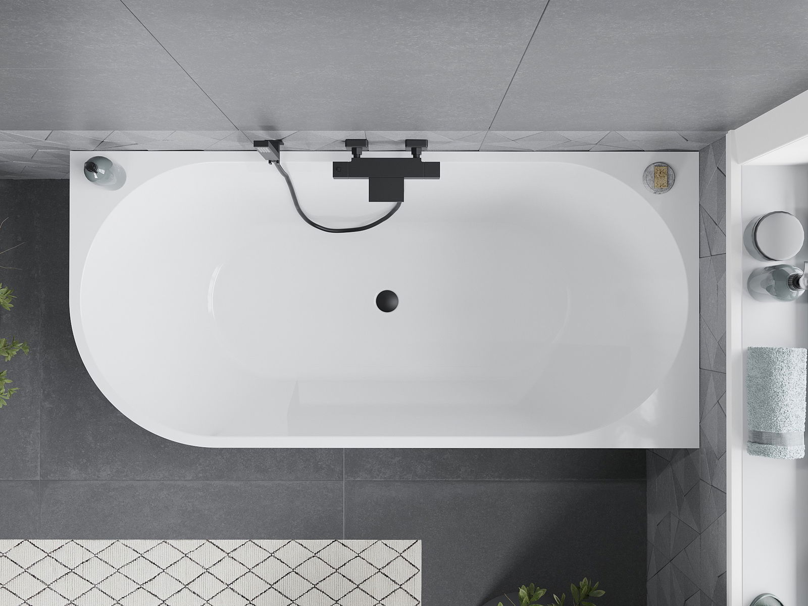 Mexen Mia je voľne stojaca rohová vaňa s rozmermi 150 x 75 cm, vyrobená zo sanitárneho akrylu v elegantnej bielej farbe. Jej odolnosť proti matovaniu a UV žiareniu zaručuje dlhodobý lesk. Vaňa je navrhnutá na inštaláciu v pravom rohu a jej čierna povrchová úprava pridáva na modernosti. Vybavená je prepadovým otvorom a možnosťou použitia sifónu a zátky klik klak, čo zvyšuje komfort používania. Je to ideálne riešenie pre štýlové kúpeľne, ktoré spájajú eleganciu s funkčnosťou.