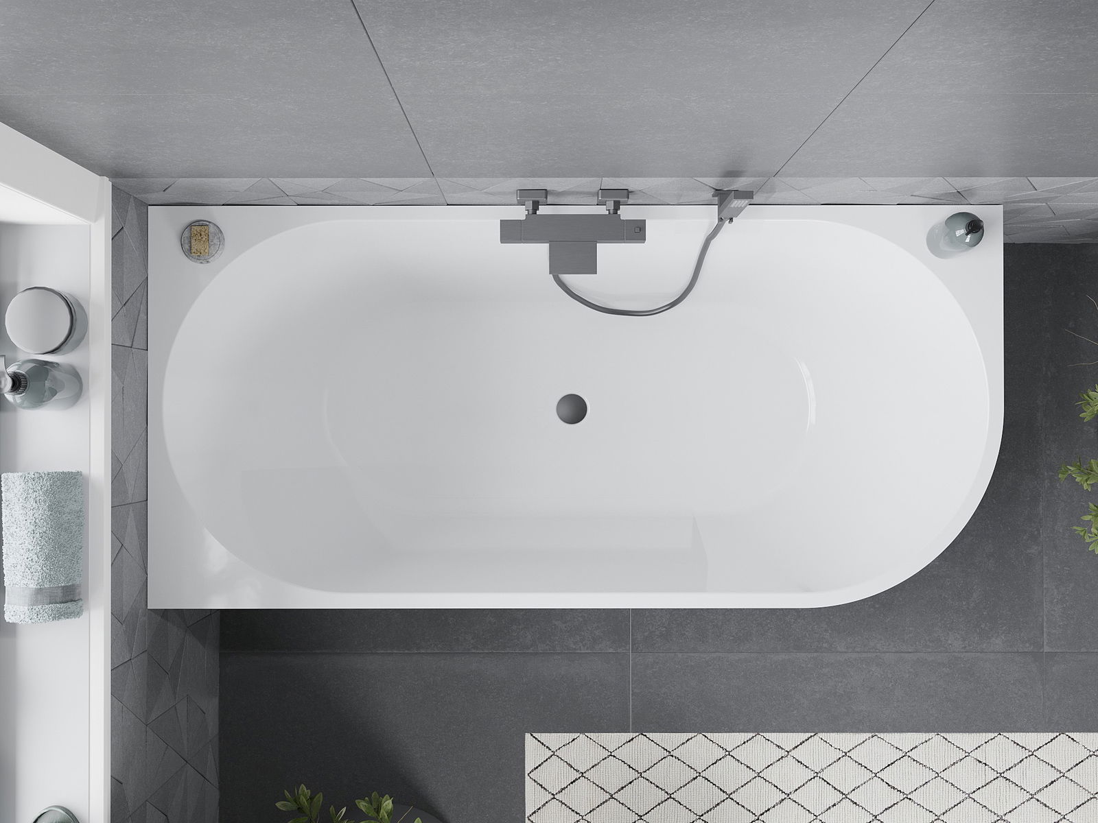 Mexen Mia voľne stojaca rohová vaňa ľavá 160 x 75 cm, biela/čierna, prepad gun metal - 52691607575L-95