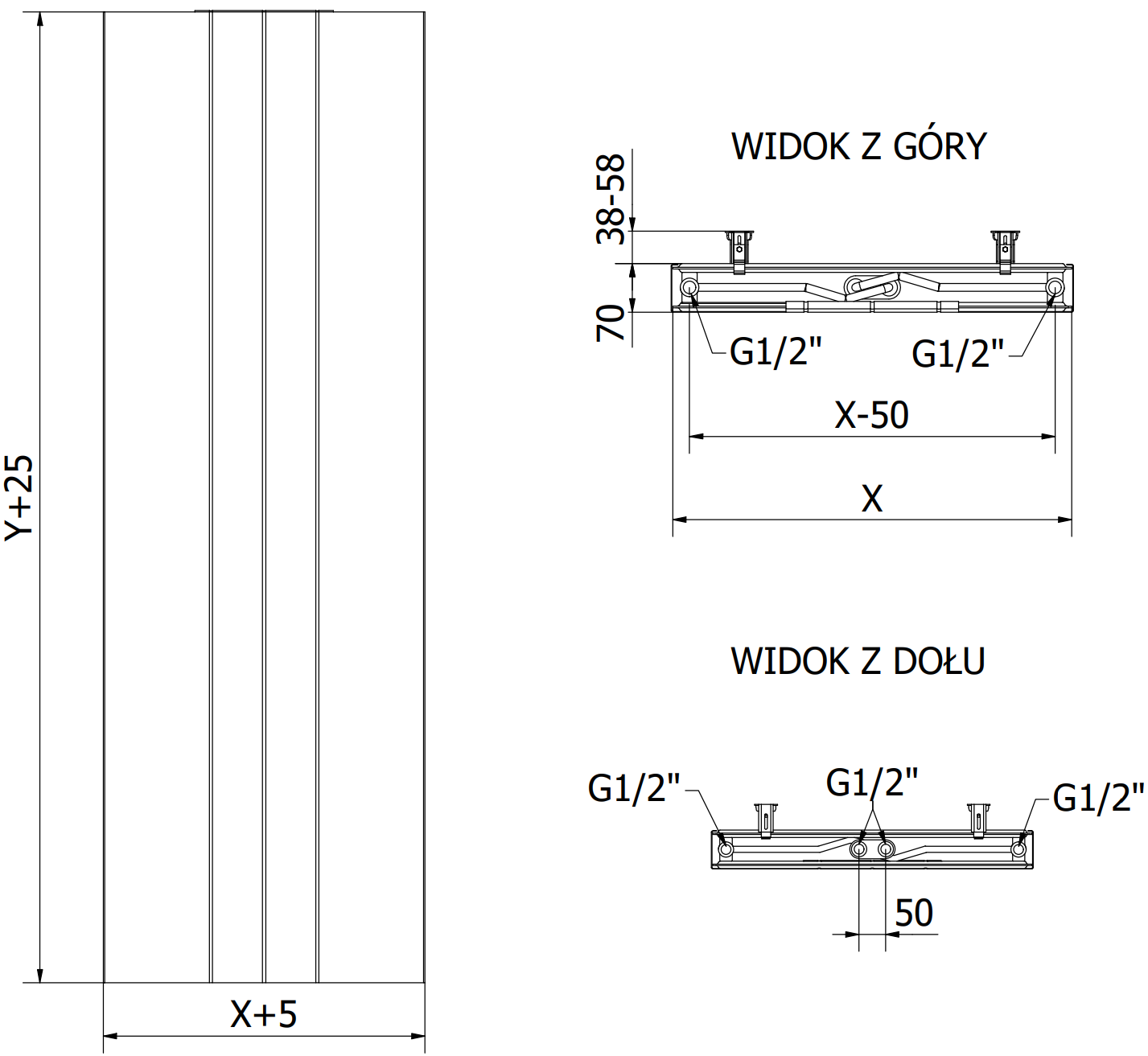 - 2xG ½" dolné strešné