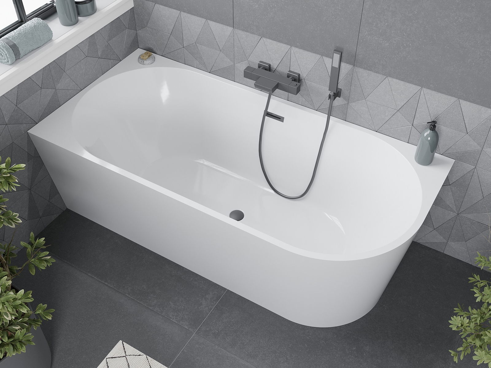 Mexen Mia rohová voľne stojaca vaňa ľavá 170 x 80 cm, biela, prepad gun metal - 52691708000L-95