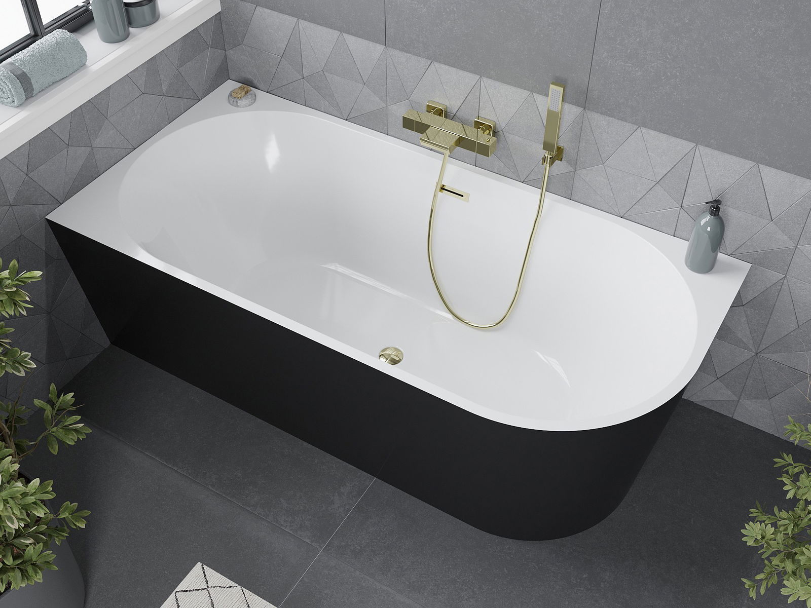 Mexen Mia voľne stojaca rohová vaňa ľavá 170 x 80 cm, biela/čierna, prepad zlatý - 52691708075L-50