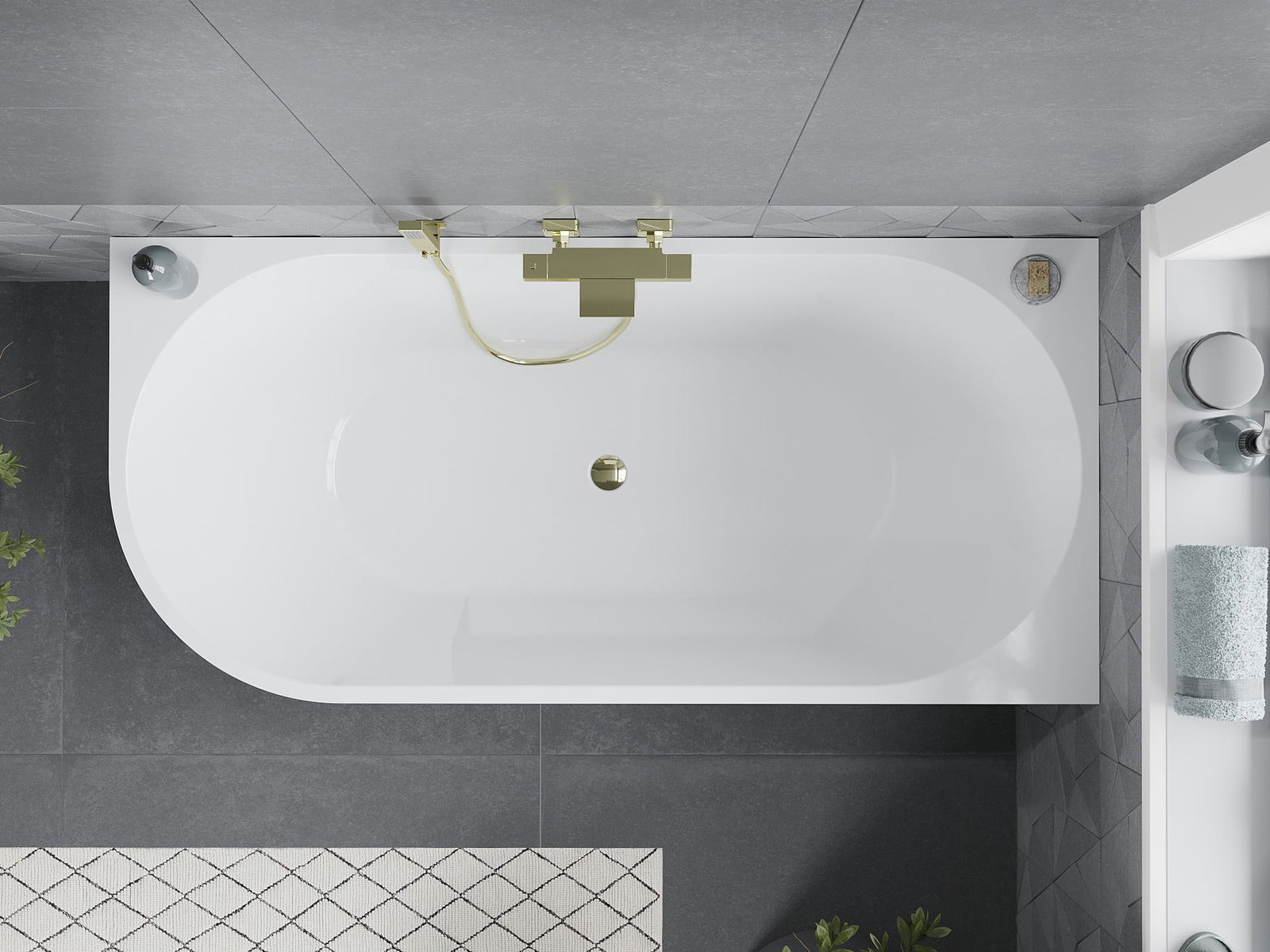 Mexen Mia voľne stojaca rohová vaňa pravá 170 x 80 cm, biela, prepad zlatý - 52691708000P-50