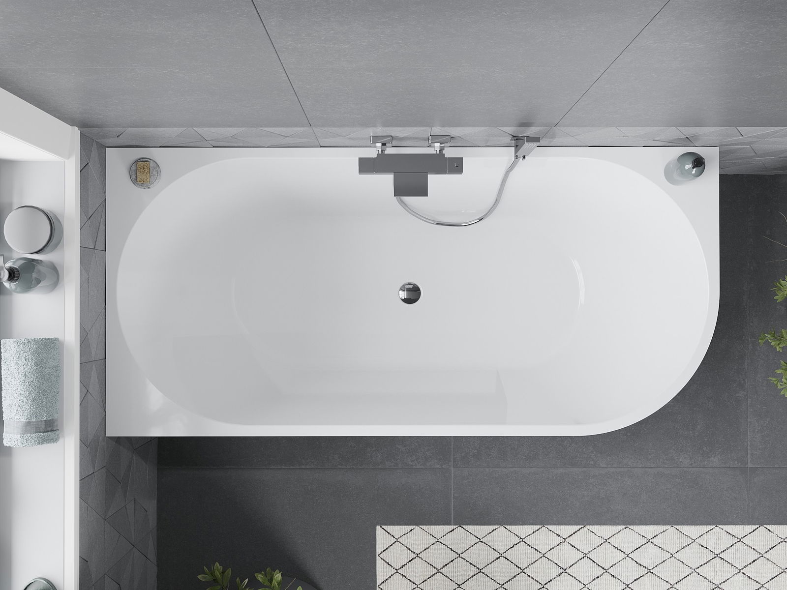 Mexen Mia je elegantná voľne stojaca rohová vaňa s rozmermi 180 x 80 cm, ktorá sa dokonale hodí do moderných interiérov. Vyrobená zo sanitárneho akrylu, poskytuje trvanlivosť a odolnosť voči matovaniu a UV žiareniu. Biely lesklý povrch, chrómovaná povrchová úprava a prepadový otvor sú ďalšie výhody tohto produktu. Vaňa je určená na rohovú montáž, v balení je zahrnutý sifón a zátka klik-klak, čo ju robí praktickou voľbou pre každý kúpeľňový projekt.