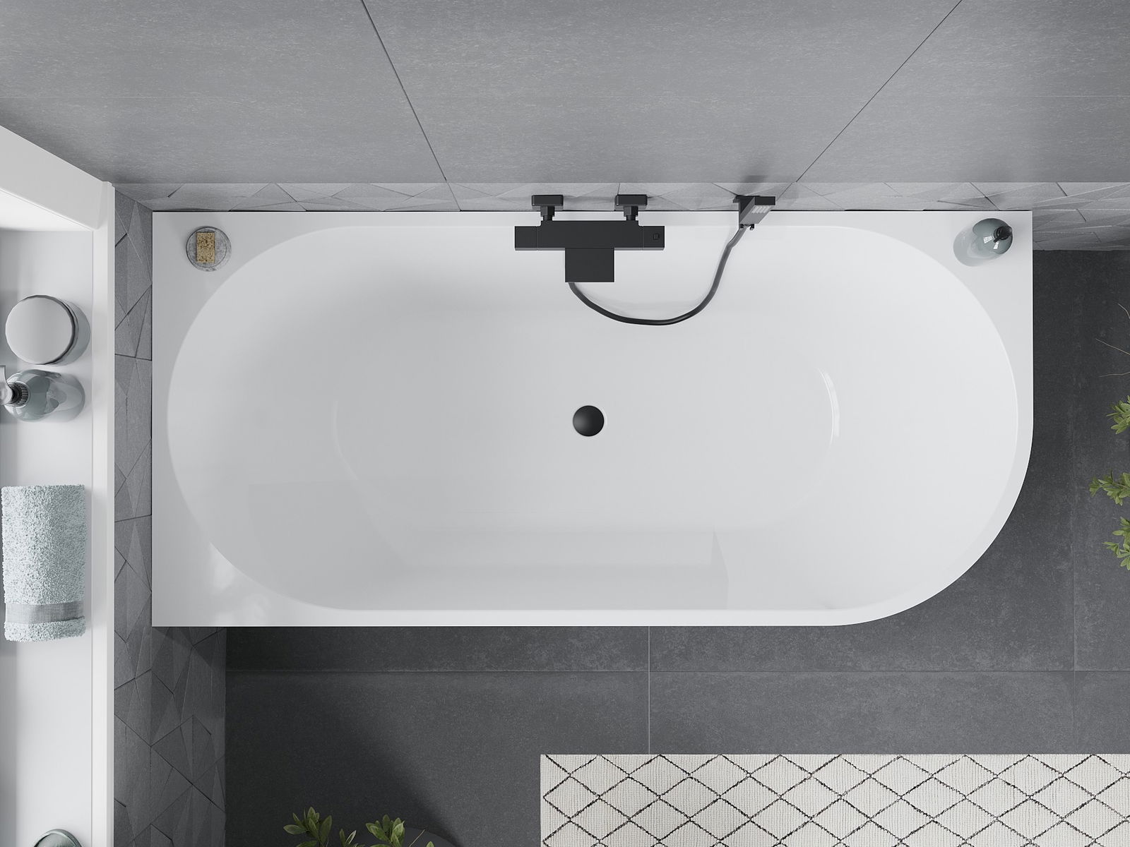 Mexen Mia voľne stojaca rohová vaňa ľavá 180 x 80 cm, biela/čierna, prepad čierny - 52691808075L-70