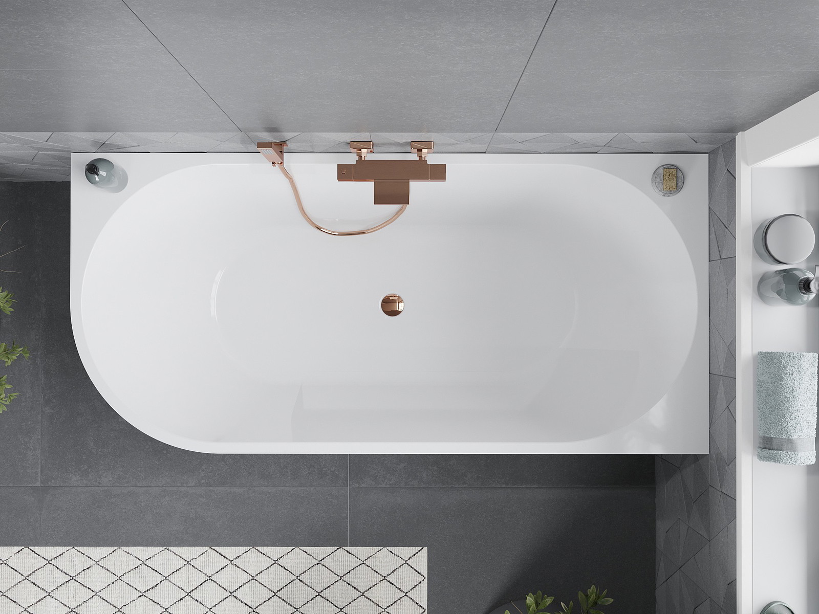 Mexen Mia je elegantná voľne stojaca rohová vaňa s rozmerom 180 x 80 cm, vyrobená zo sanitárneho akrylu. Jej biela farba a lesklý povrch zaisťujú, že sa dokonale hodí do moderných interiérov. Vaňa má odtok v strede a prepadový otvor, čo zaručuje pohodlné používanie. Ďalšou výhodou je odolnosť voči matovaniu a UV žiareniu, čo zaručuje jej dlhodobý krásny vzhľad. Súčasťou balenia je sifón a uzáver klik klak v elegantnom, ružovom zlate.