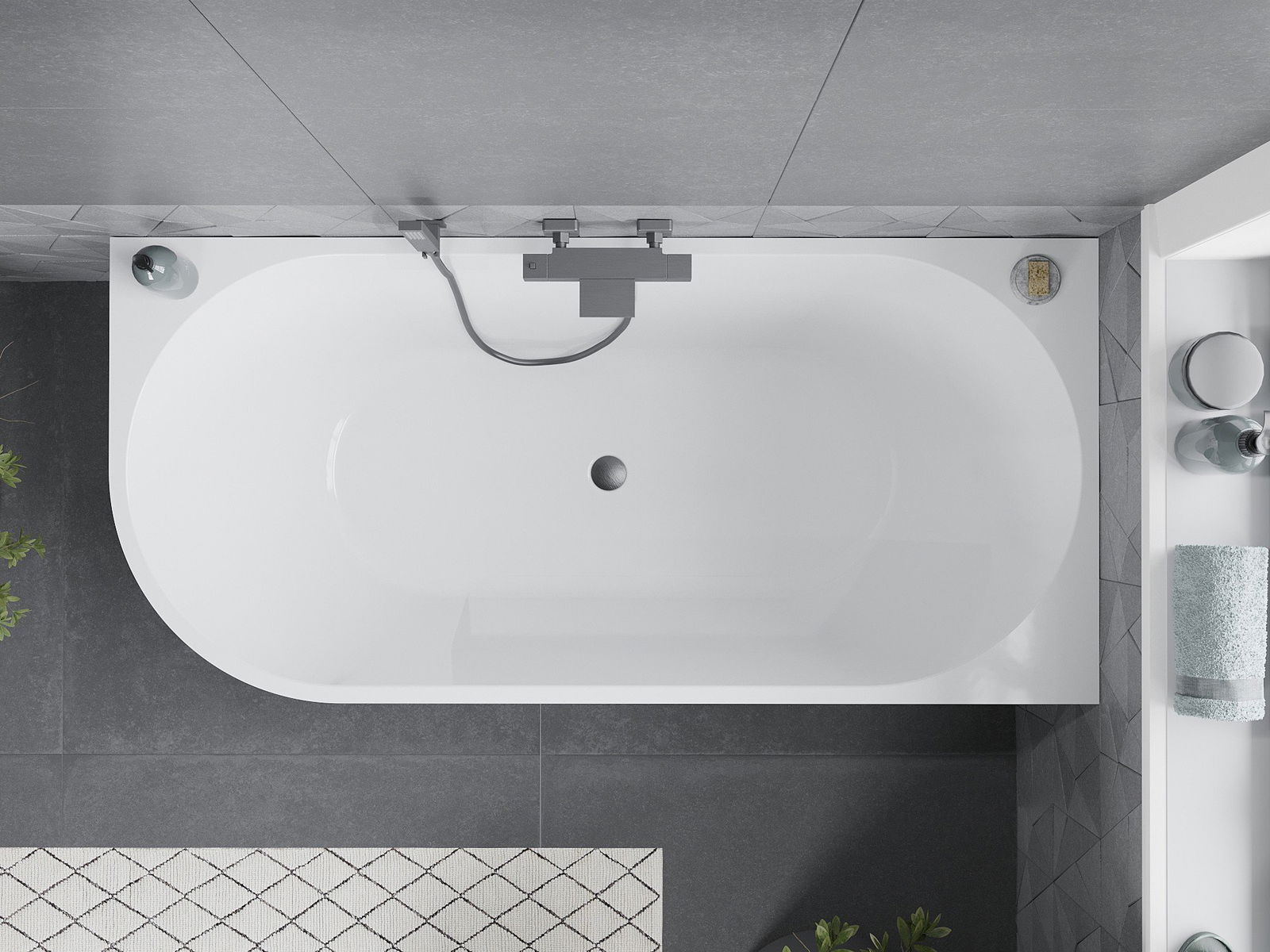 Mexen Mia voľne stojaca rohová pravá vaňa 180 x 80 cm, biela, prepad gun gray brúsený - 52691808000P-66