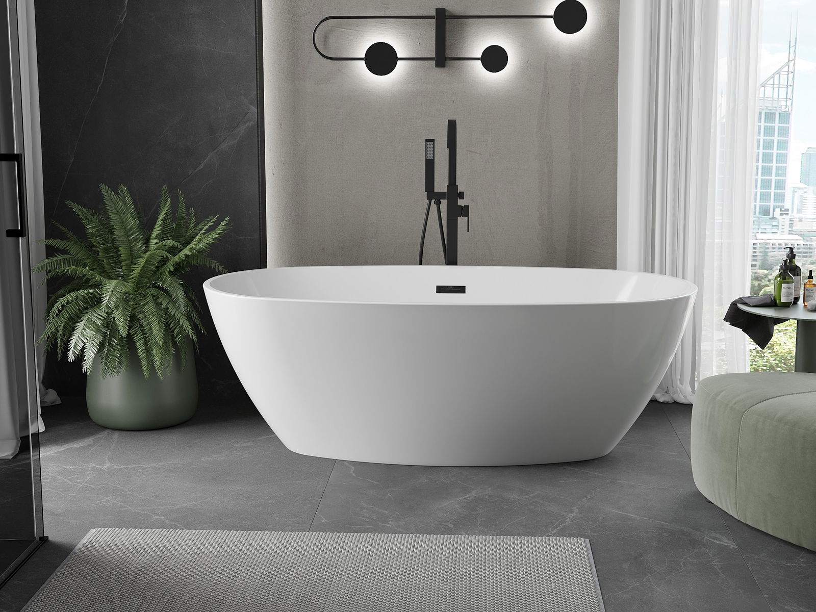 Mexen Eris voľne stojaca vaňa 170 x 80 cm, biela, prepad čierny - 53441708000-70