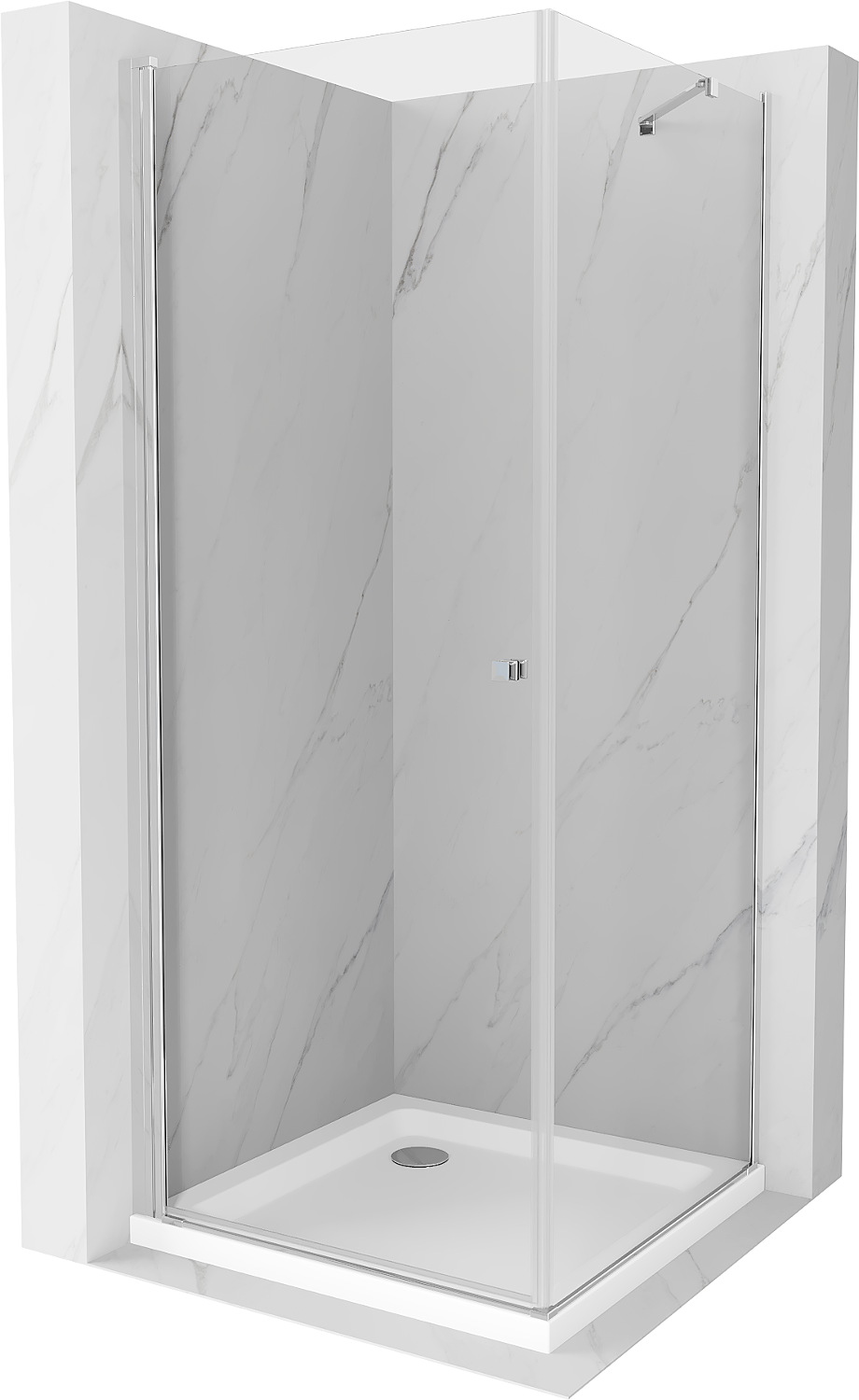 Mexen Pretoria sprchový kút s otváracími dverami 80 x 80 cm, transparentný, chróm + vanička Flat - 852-080-080-01-00-4010