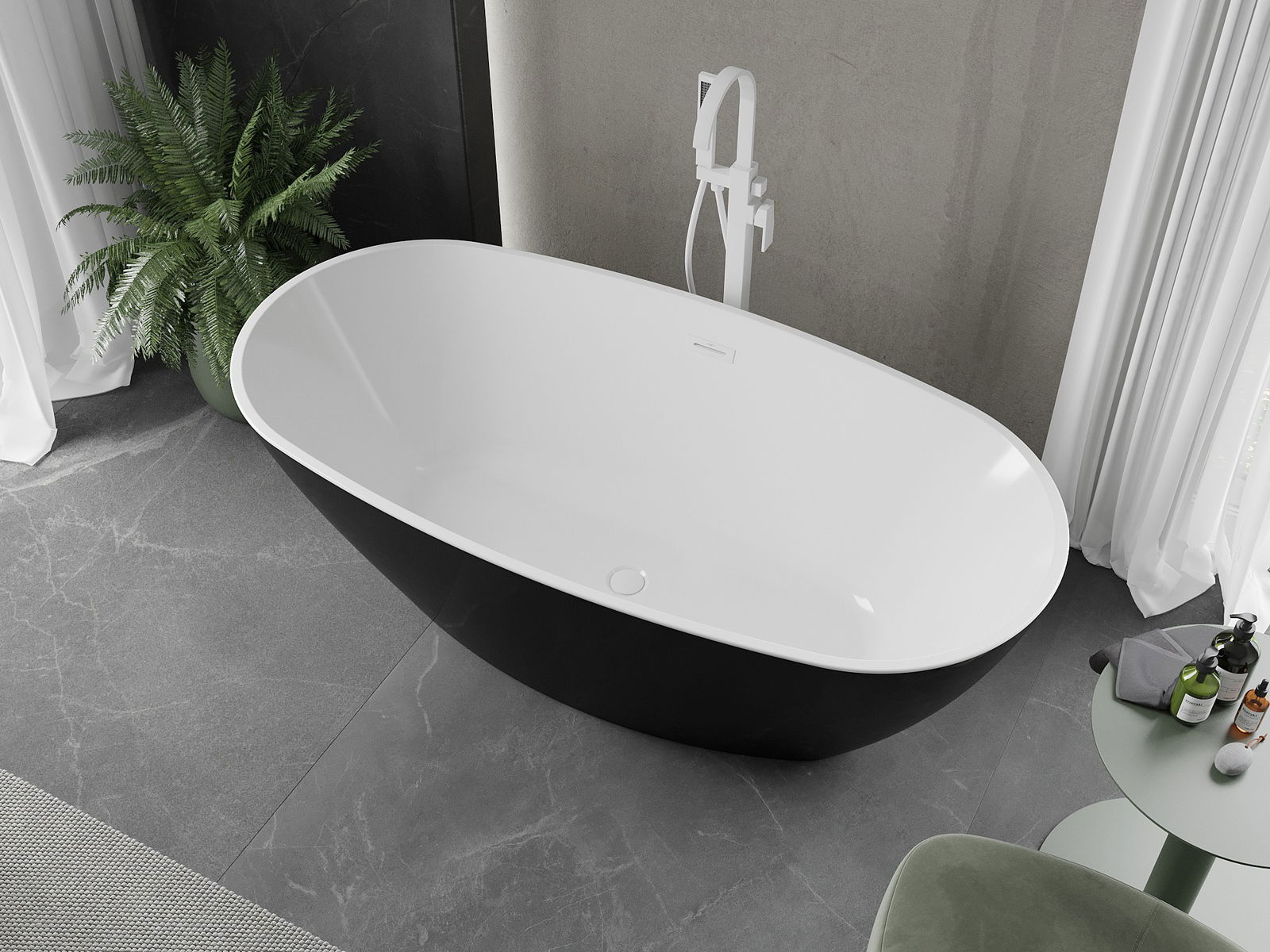 Mexen Eris je elegantná voľne stojaca vaňa s rozmermi 180 x 80 cm, vyrobená zo sanitárneho akrylu, čo zaisťuje výnimočnú trvanlivosť a odolnosť voči matovaniu a UV žiareniu. Charakterizuje sa oválnym tvarom a lesklým povrchom, ako aj bielo-čiernym farebným prevedením, ktoré dokonale ladí v moderných kúpeľniach. Vaňa má prelivový otvor a montáž voľne stojaciu, pričom v sade je sifón a klik-klak zátka, čo zabezpečuje plnú funkčnosť.