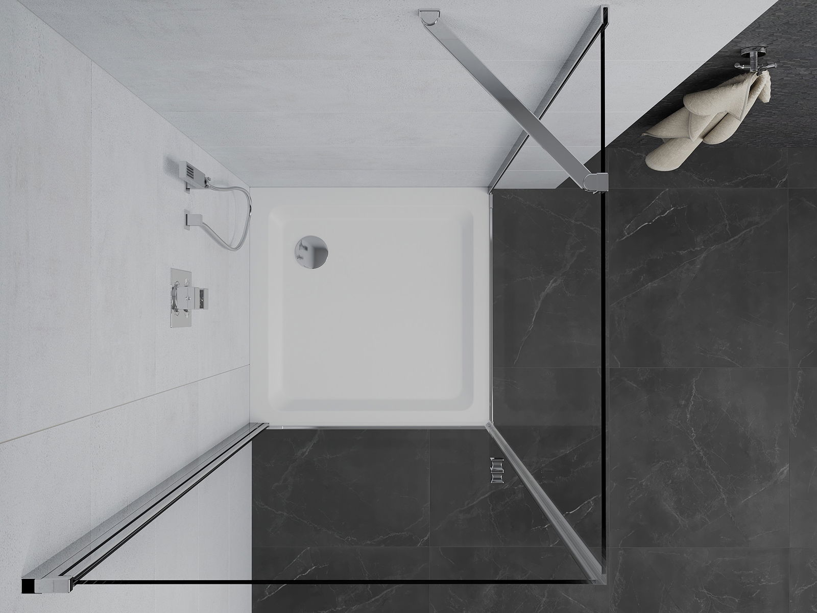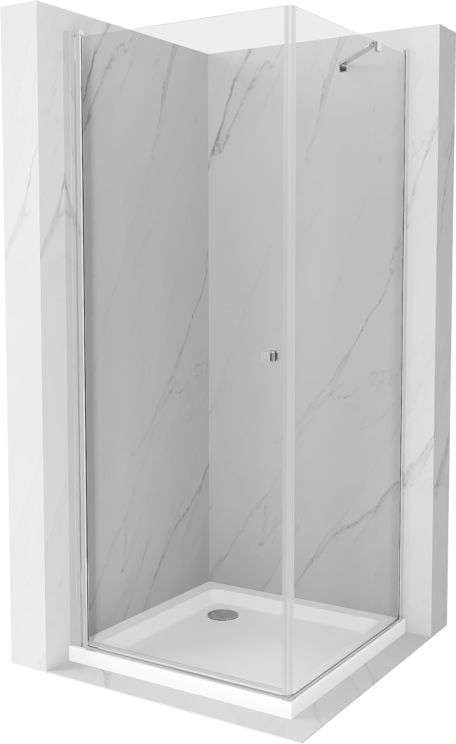 Mexen Pretoria výklopná sprchová kabína 90 x 90 cm, transparentná, chróm + plochá vanička - 852-090-090-01-00-4010