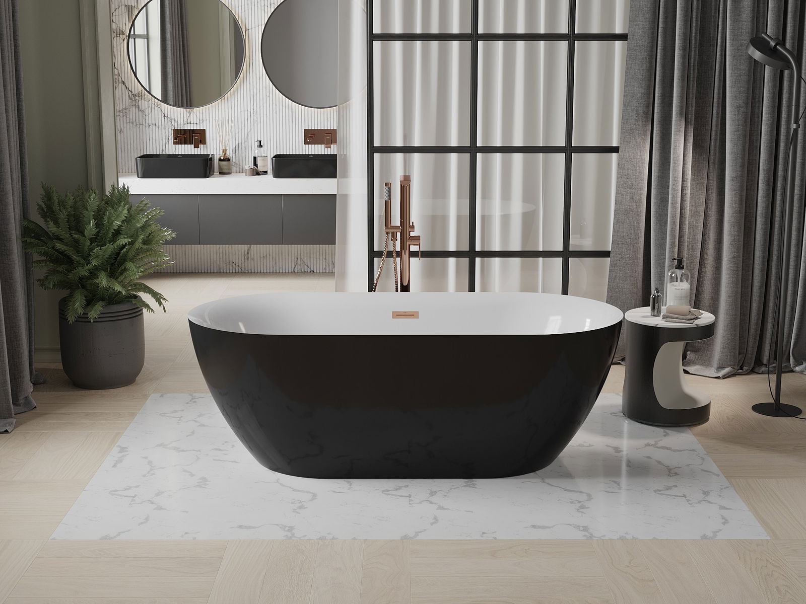 Mexen Roxy voľne stojaca vaňa 170 x 80 cm, biela/čierna, prepad ružové zlato - 51201708075-60