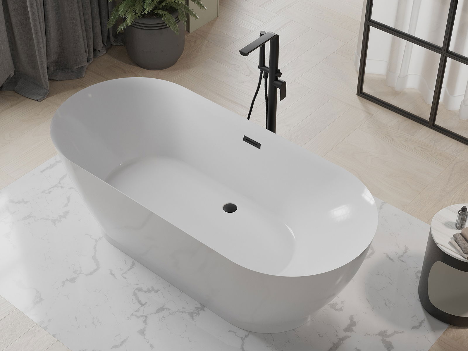 Mexen Roxy voľne stojaca vaňa 180 x 85 cm, biela, prepad čierny - 51201808500-70