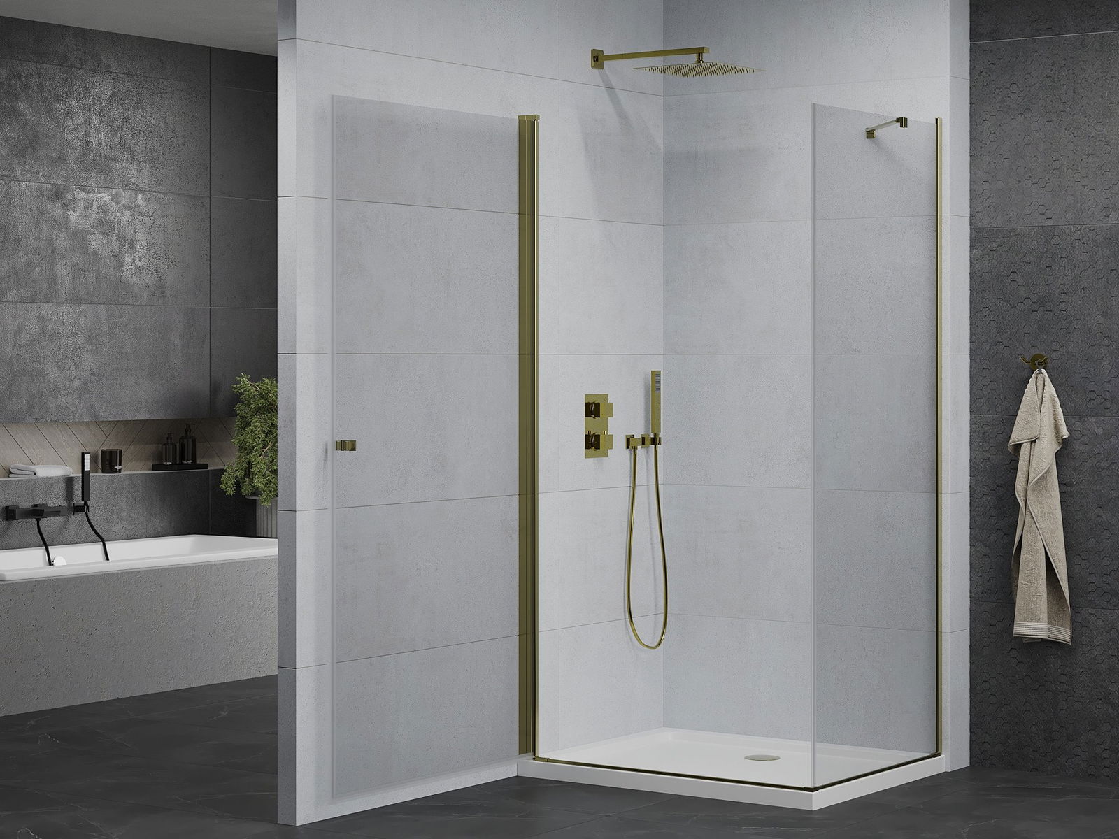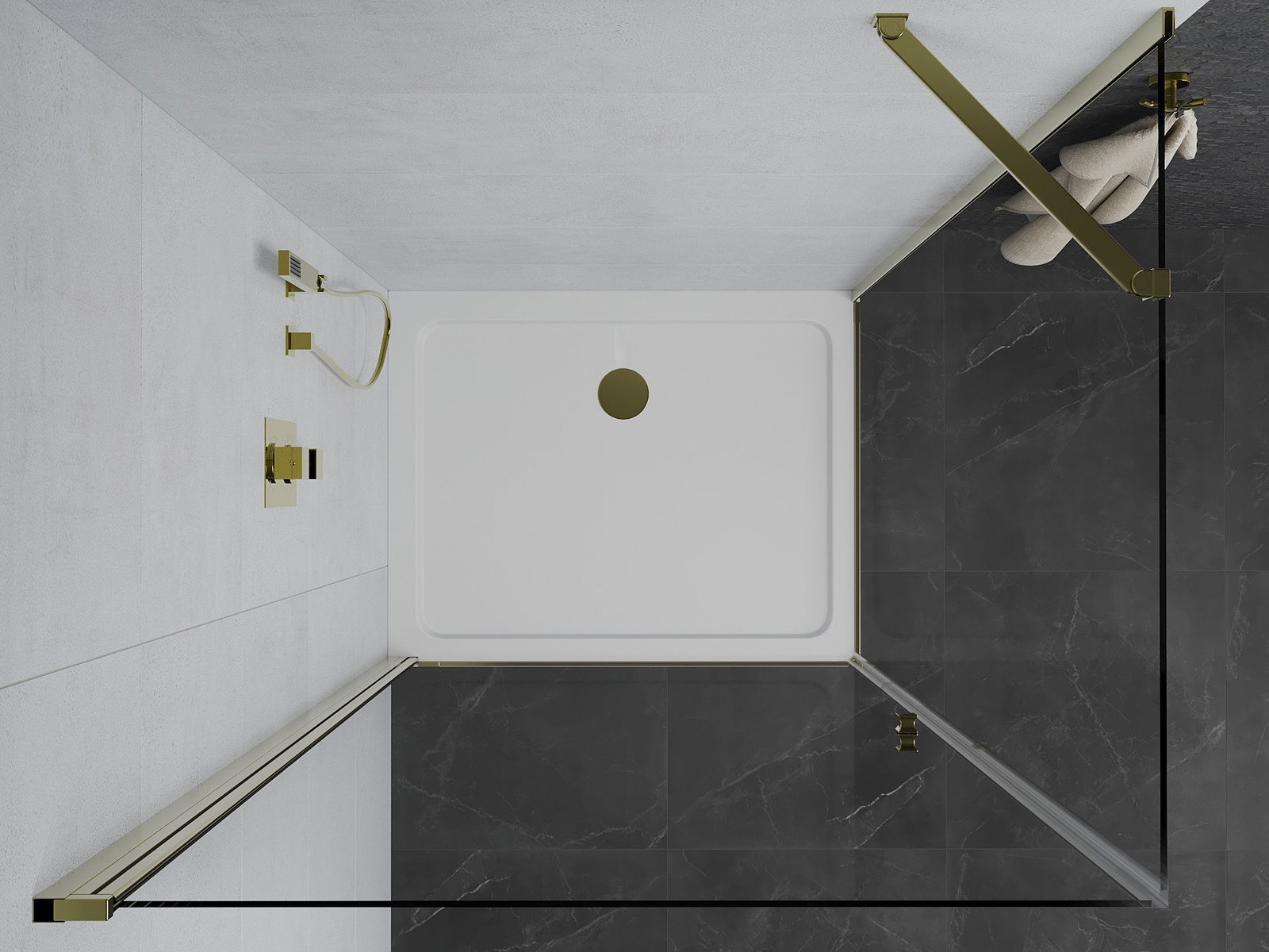 Mexen Pretoria otváracia sprchová kabína 70 x 90 cm, transparentná, zlatá + vanička Flat - 852-070-090-50-00-4010