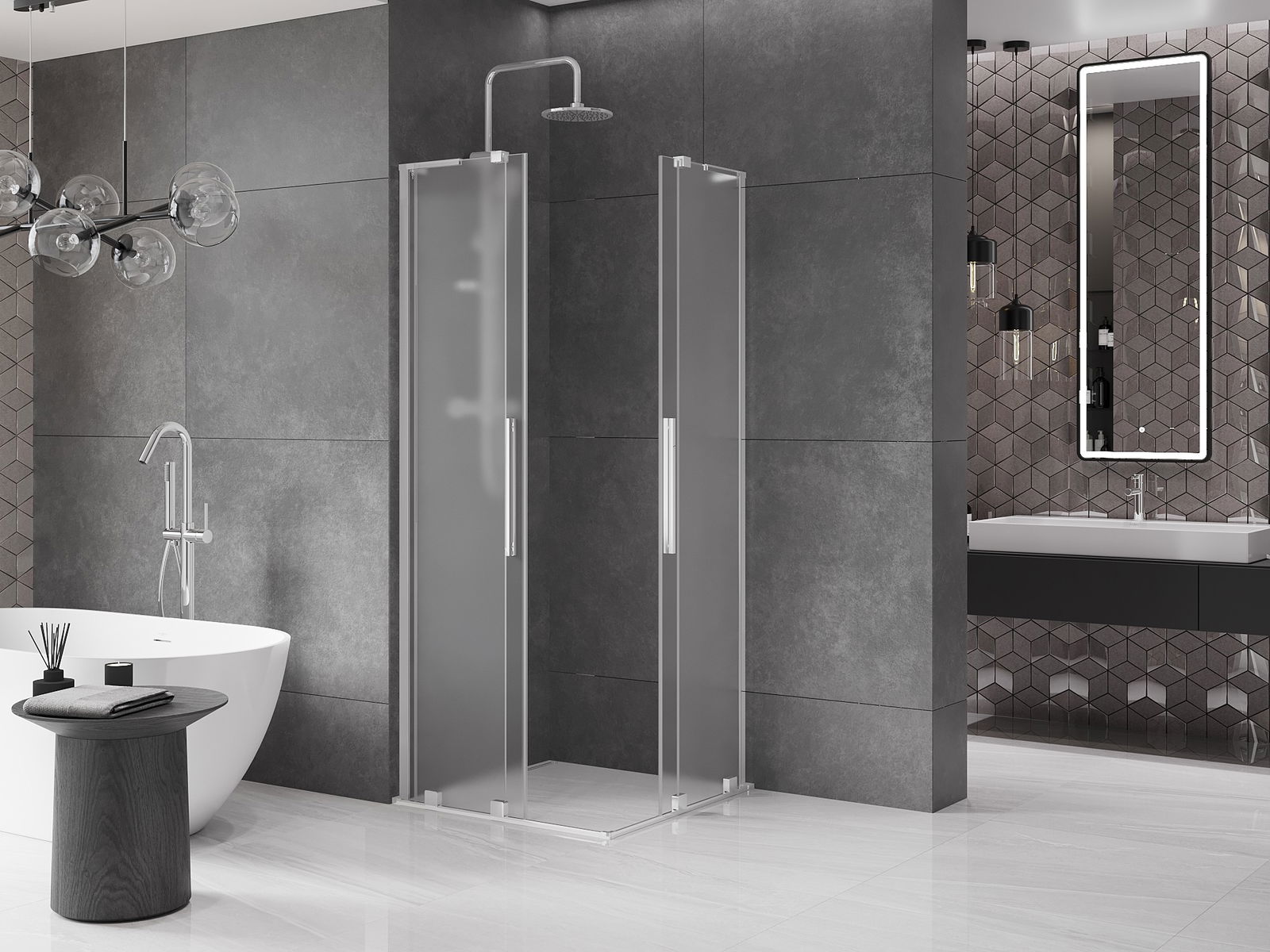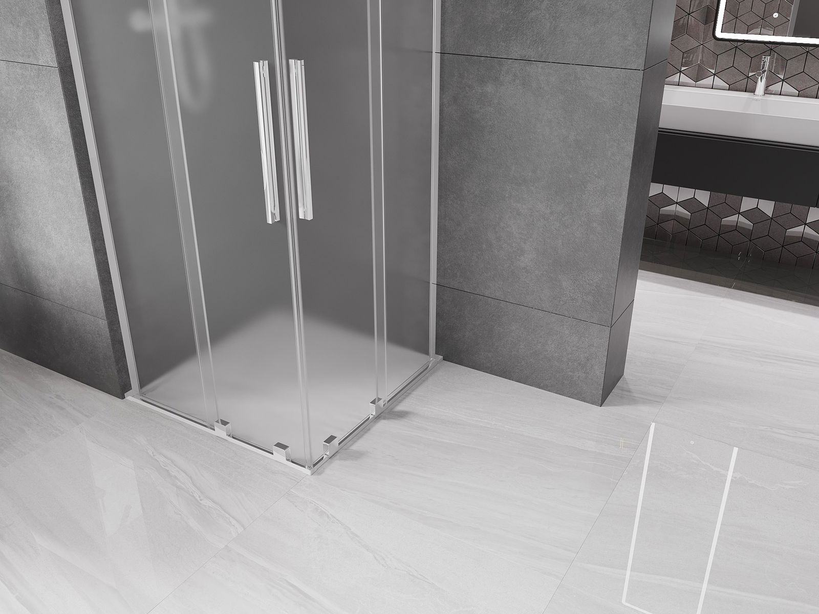 Mexen Velar L Duo posuvná sprchová kabína 90 x 90 cm, mrazené, chróm - 871-090-090-02-33-01