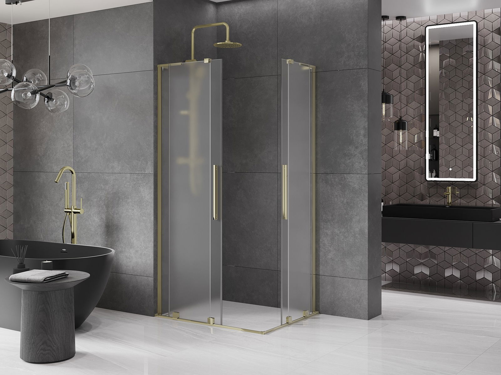 Mexen Velar L Duo posuvná sprchová kabína 100 x 90 cm, mrazené sklo, zlatá - 871-100-090-02-33-50
