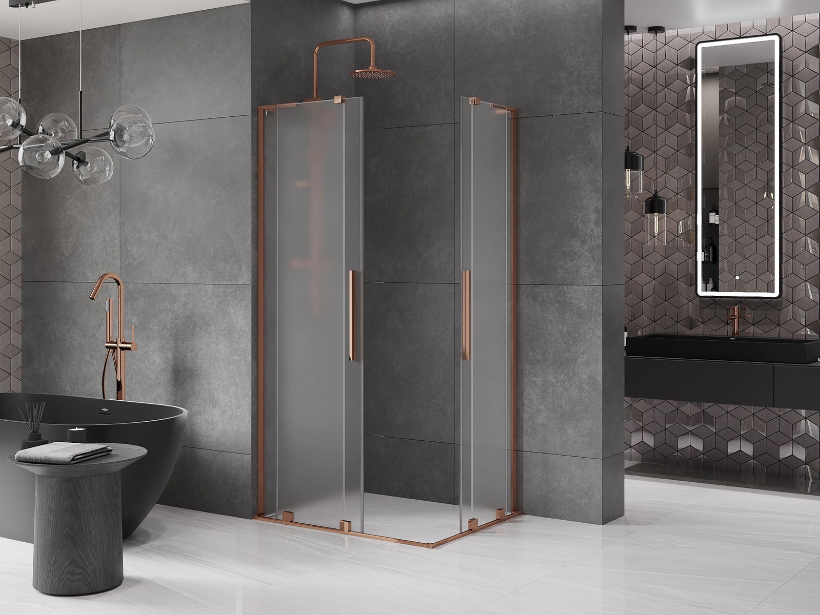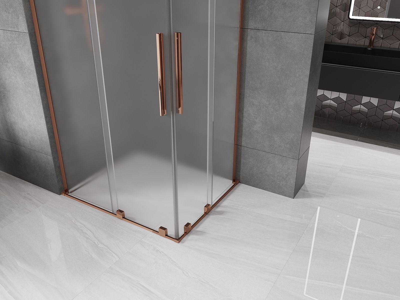 Mexen Velar L Duo posuvná sprchová kabína 100 x 90 cm, matná, ružové zlato - 871-100-090-02-33-60