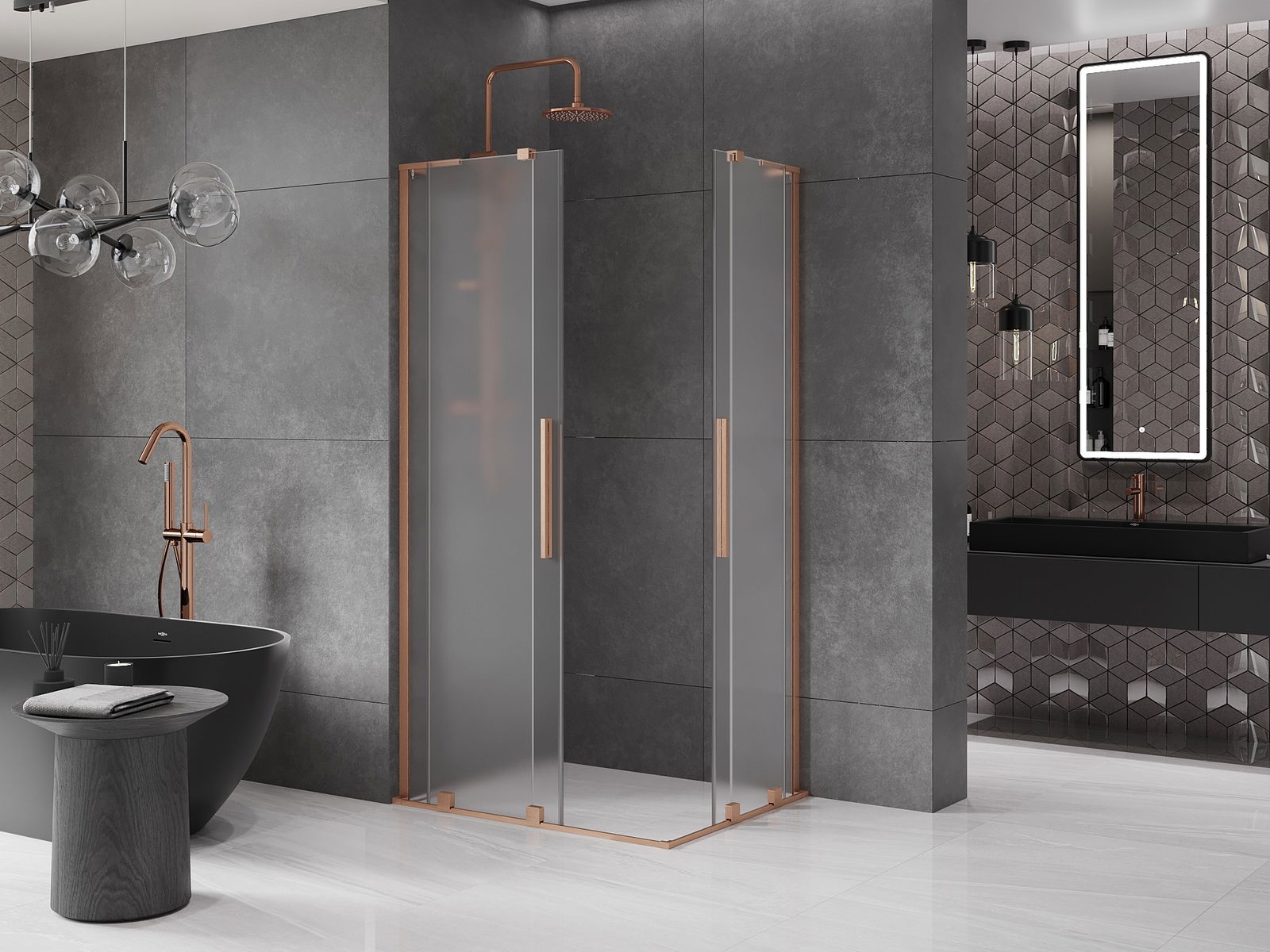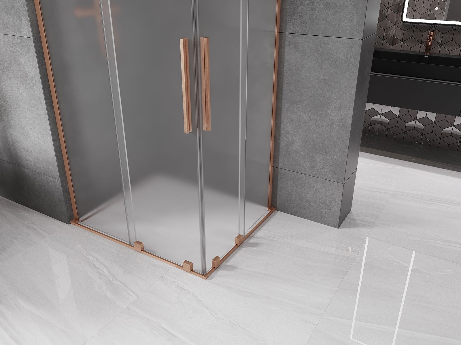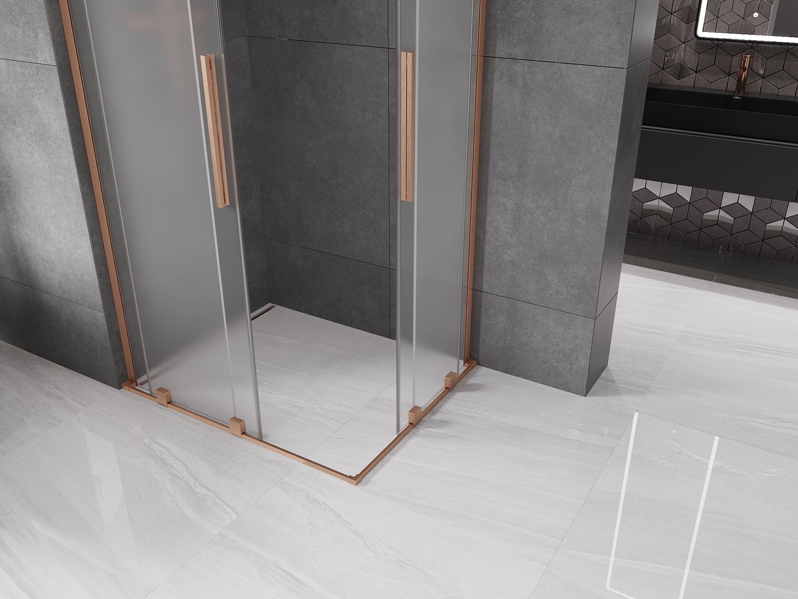 Mexen Velar L Duo posuvná sprchová kabína 90 x 80 cm, mrazivá, kartáčovaná meď - 871-090-080-02-33-65