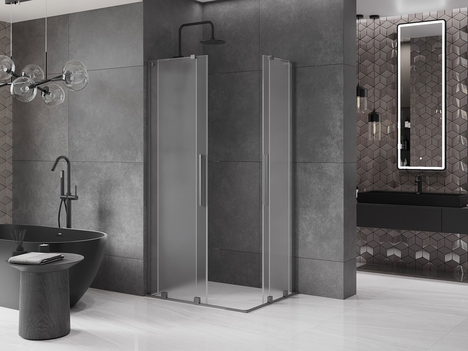 Mexen Velar L Duo posuvná sprchová kabína 90 x 80 cm, mrazené, kartáčovaná zbraňová sivá - 871-090-080-02-33-66