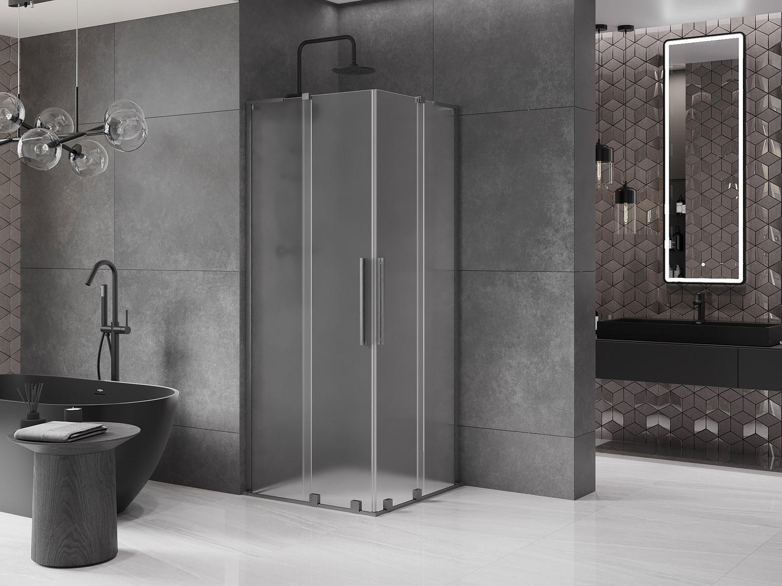Mexen Velar L Duo posuvná sprchová kabína 90 x 90 cm, mrazené, brúsená zbraňová sivá - 871-090-090-02-33-66