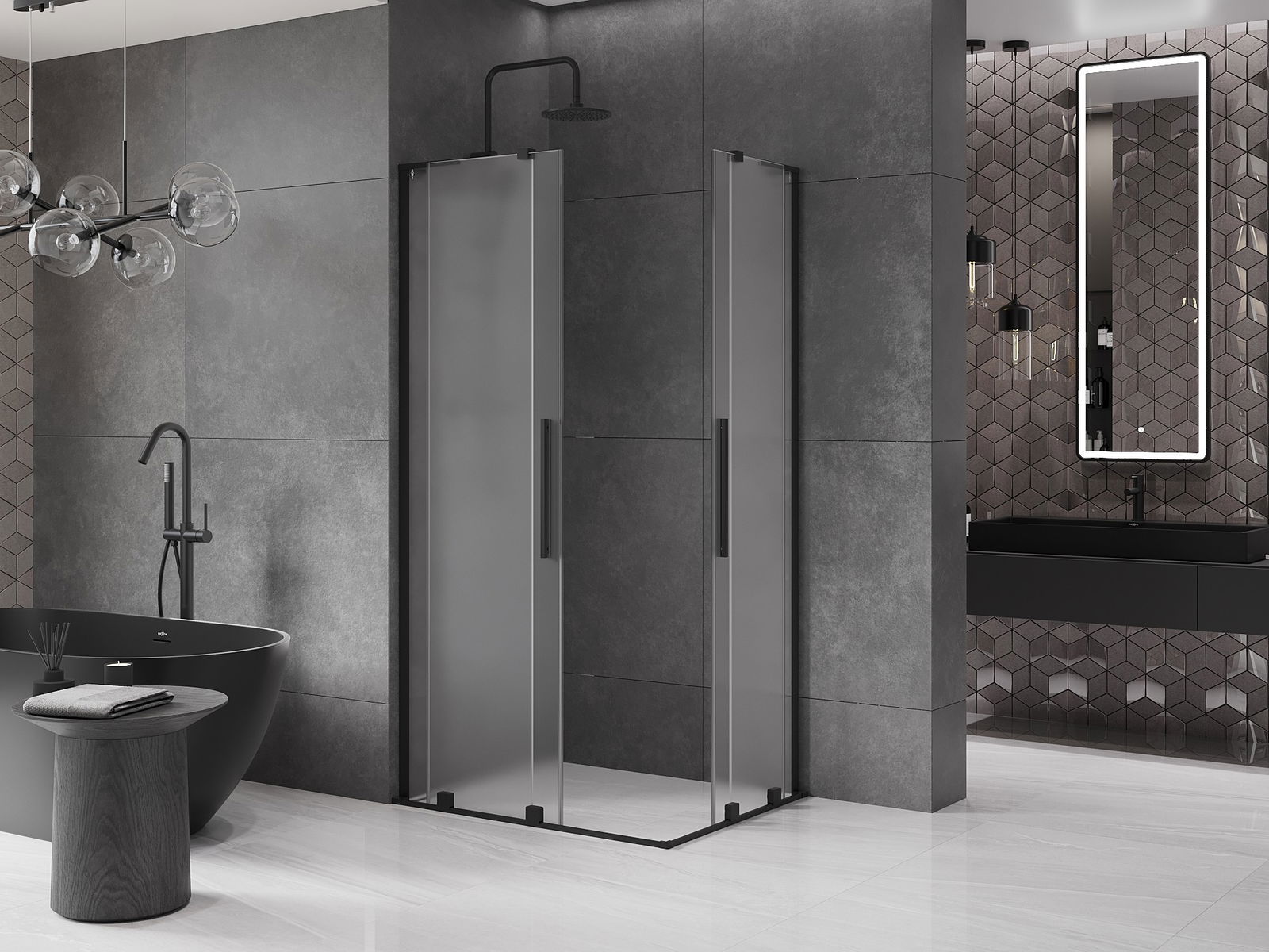 Mexen Velar L Duo posuvná sprchová kabína 100 x 90 cm, matné sklo, čierna - 871-100-090-02-33-70