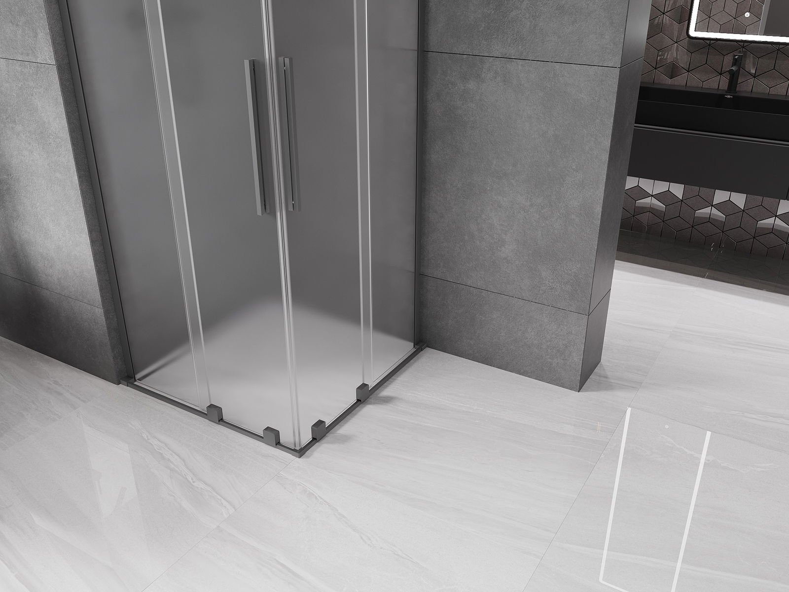 Mexen Velar L Duo posuvná sprchová kabína 80 x 80 cm, námraza, gun metal - 871-080-080-02-33-95