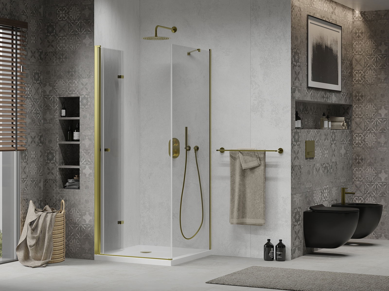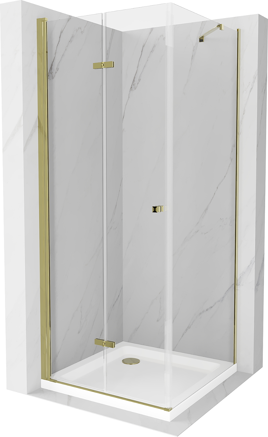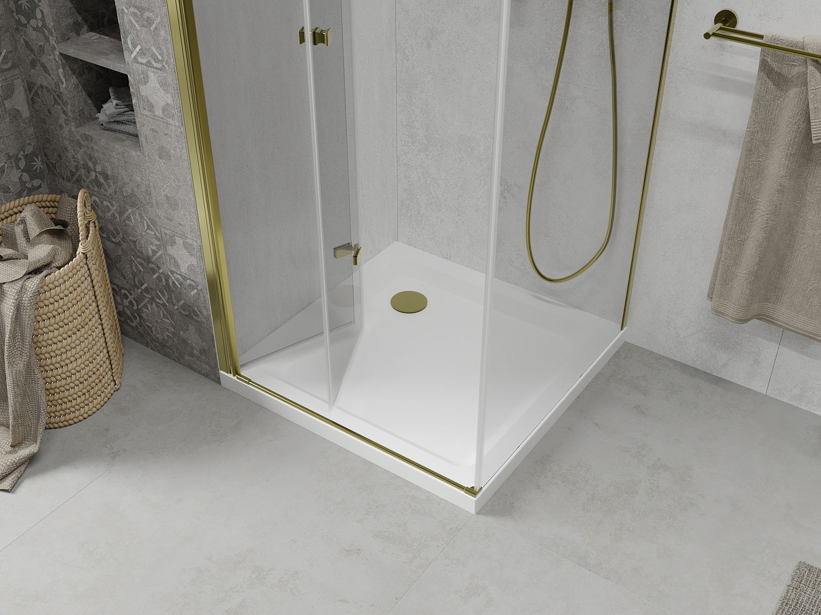 Mexen Lima skladací sprchový kút 80 x 80 cm, transparentný, zlatý + vanička Flat - 856-080-080-50-00-4010