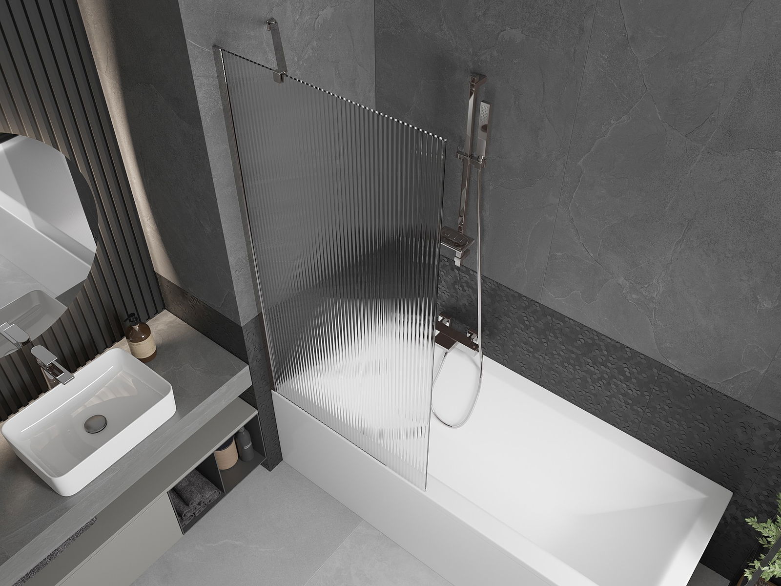 Účinná ochrana pred rozliatím vody počas kúpania. Paravan má tesnenia, ktoré sa ideálne prispôsobujú povrchu skla a okraju vane. Funkčné riešenie zaisťujúce bezpečnosť a jednoduchú údržbu čistoty.