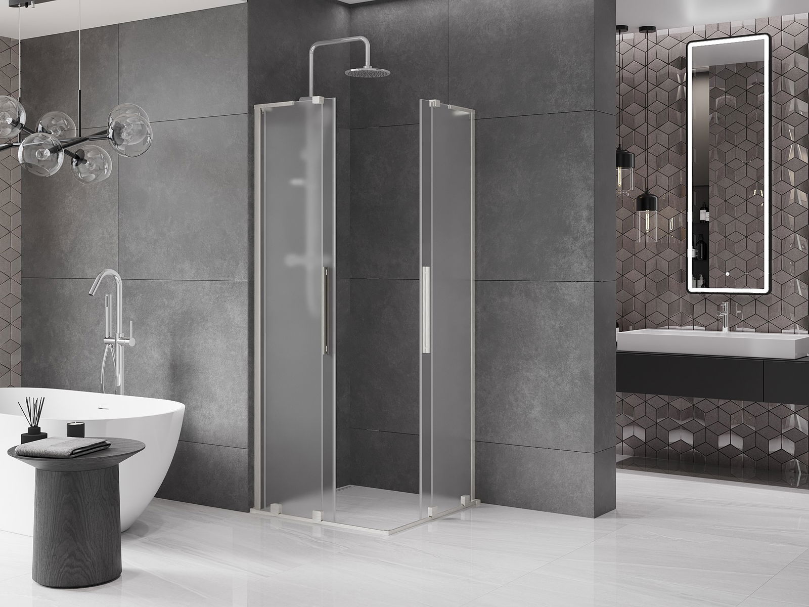 Praktický a pohodlný držiak je vyrobený z nehrdzavejúcej ocele. Módny tvar v kombinácii s povrchovou úpravou prispôsobenou farbe profilov dodáva celej konštrukcii moderný a štýlový vzhľad, podčiarkujúc estetiku každej kúpeľne.