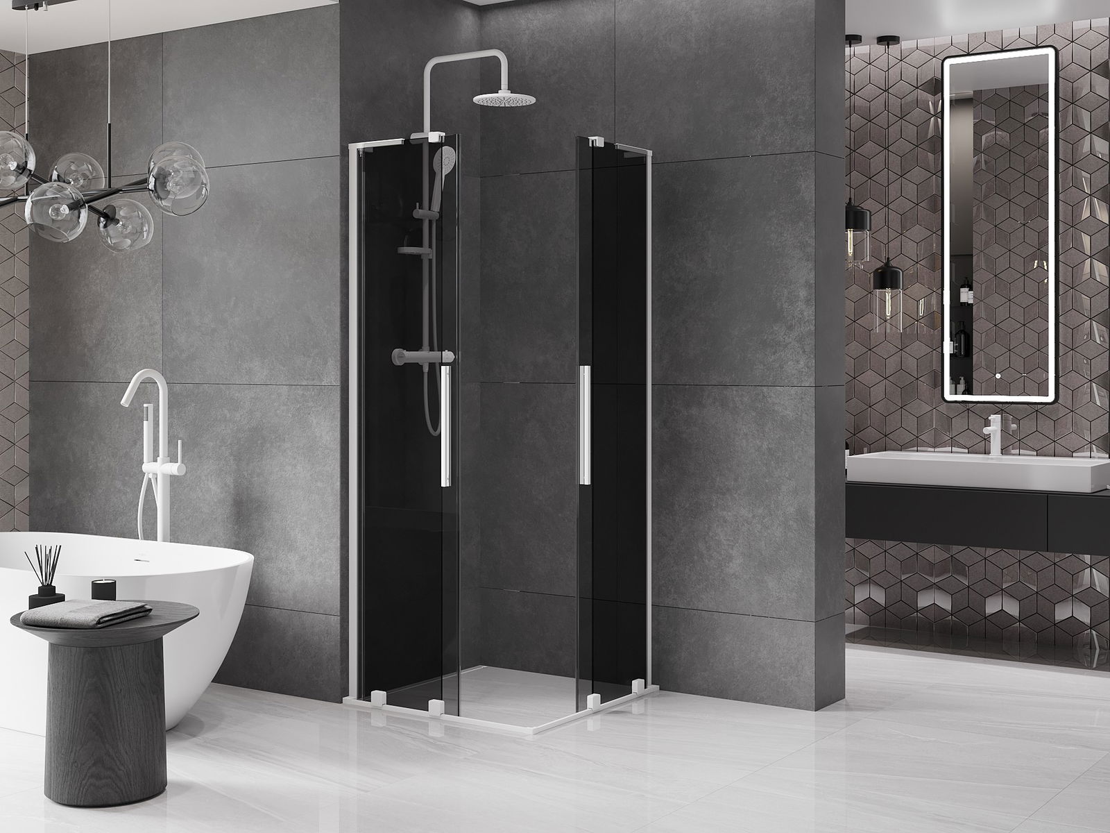 Mexen Velar L Duo posuvný sprchový kút 100 x 100 cm, grafit, biela - 871-100-100-02-43-20