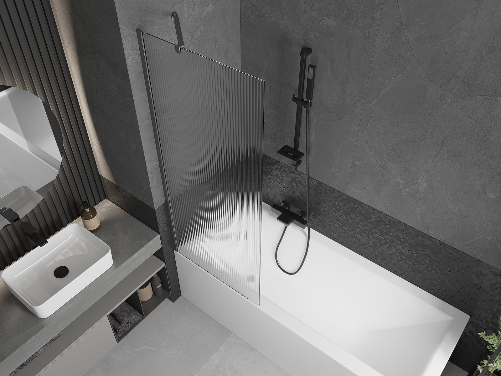 Mexen Next vaňová zástenka 1-krídlová 70 x 150 cm, prúžky, gun gray brúsená - 895-070-000-00-09-66