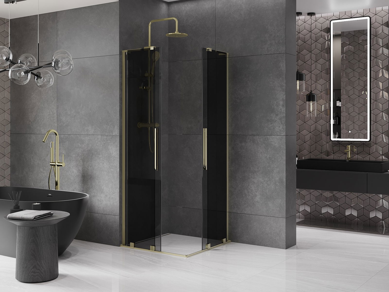 Mexen Velar L Duo sprchový kút posuvný 90 x 90 cm, grafitový, zlatý - 871-090-090-02-43-50