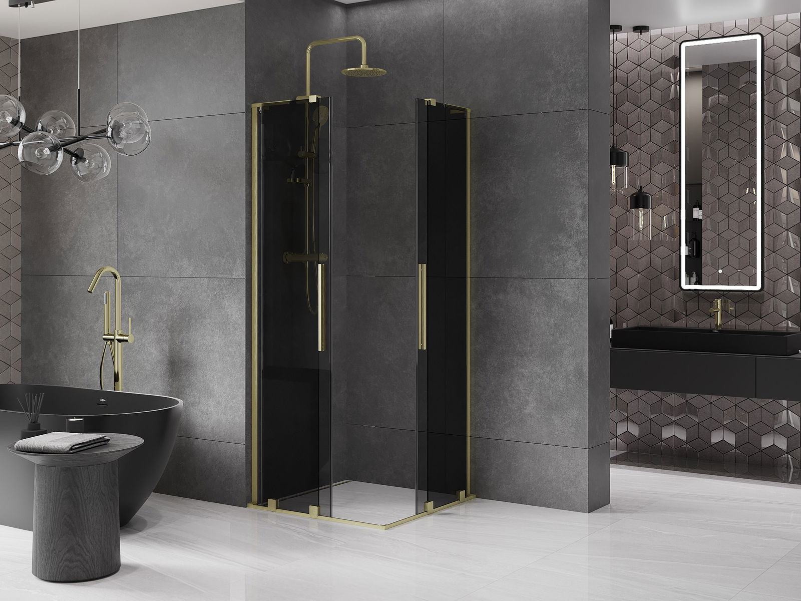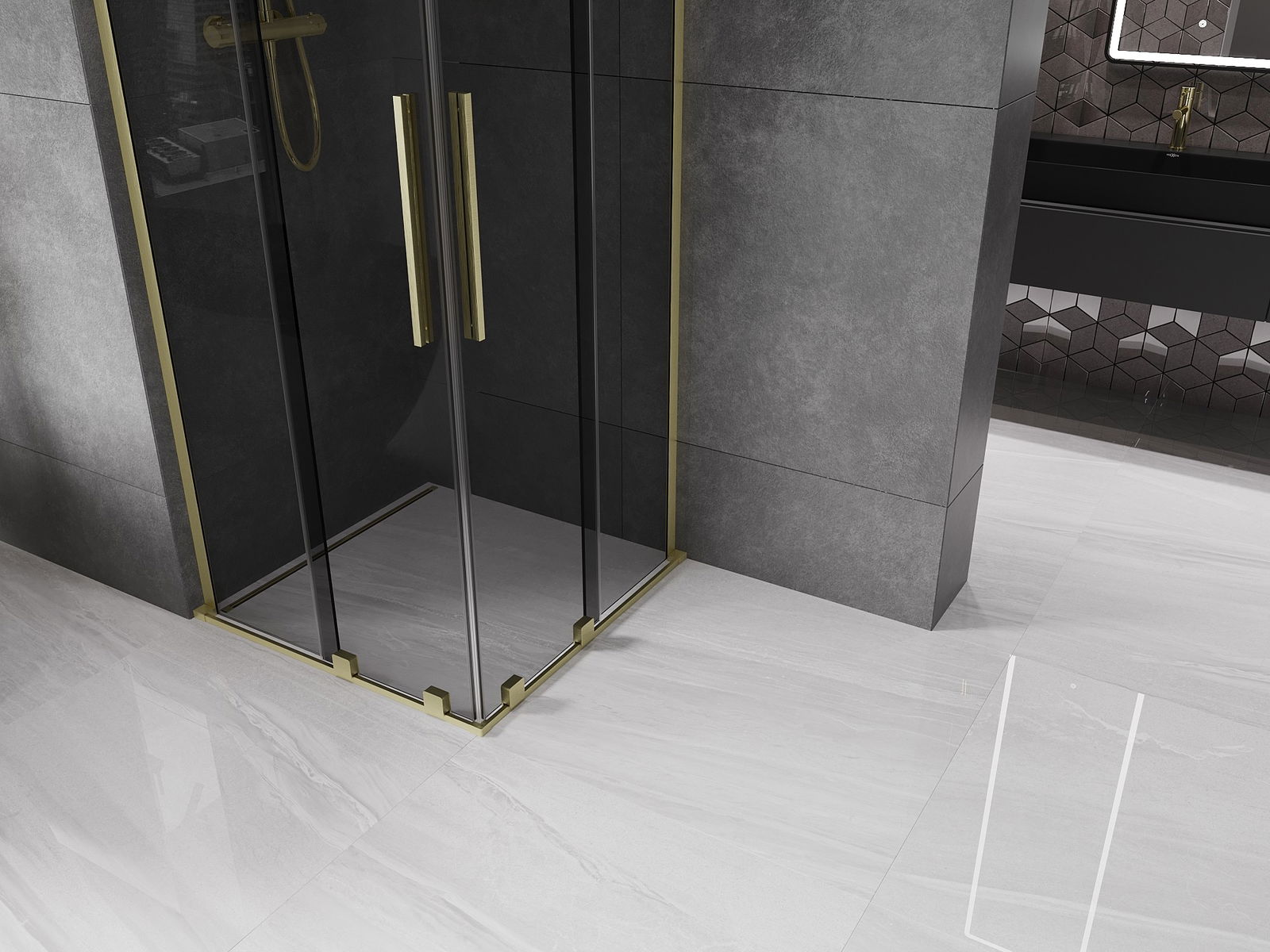 Mexen Velar L Duo posuvná sprchová kabína 80 x 80 cm, grafitová, zlatá kartáčovaná - 871-080-080-02-43-55