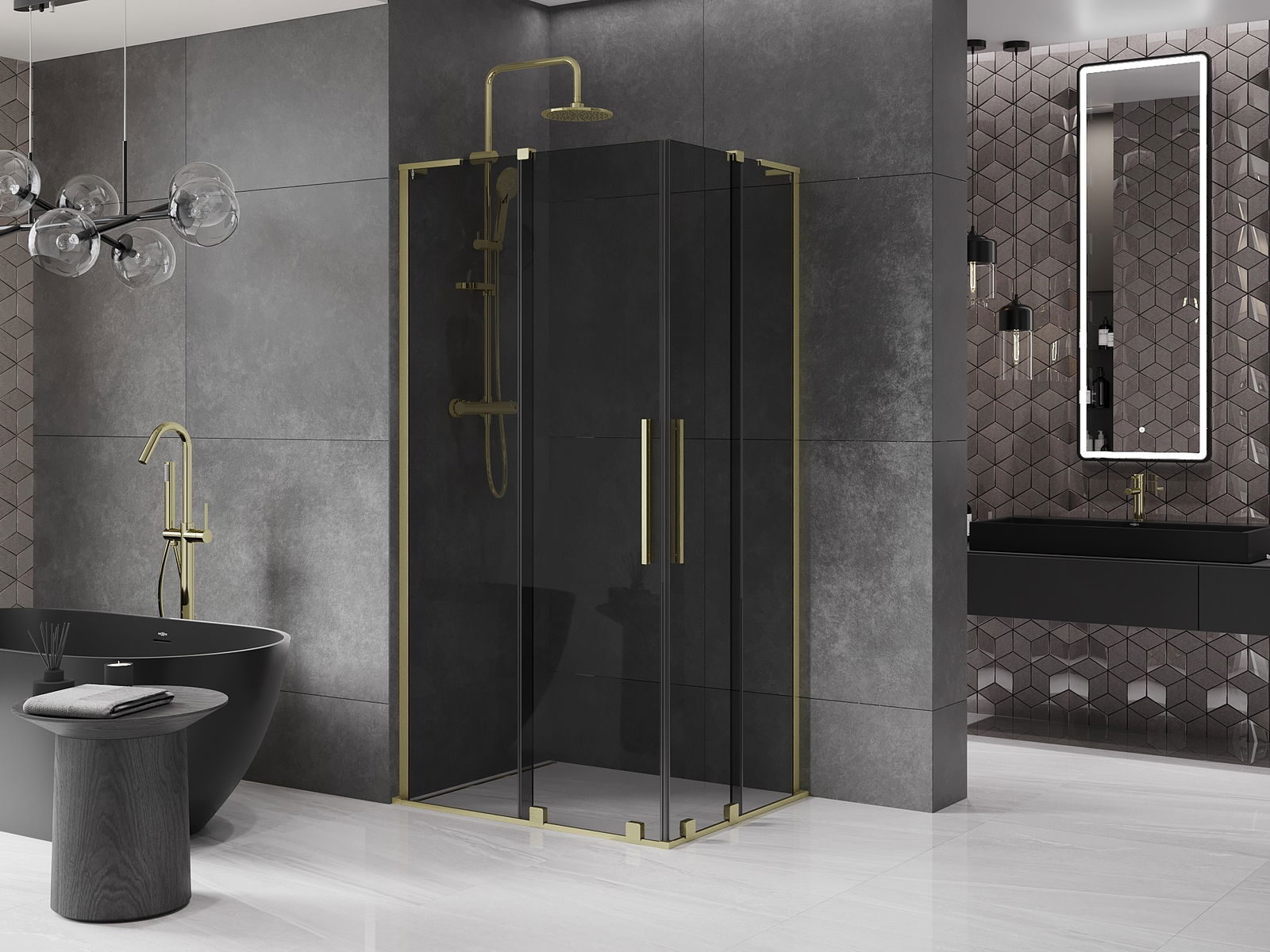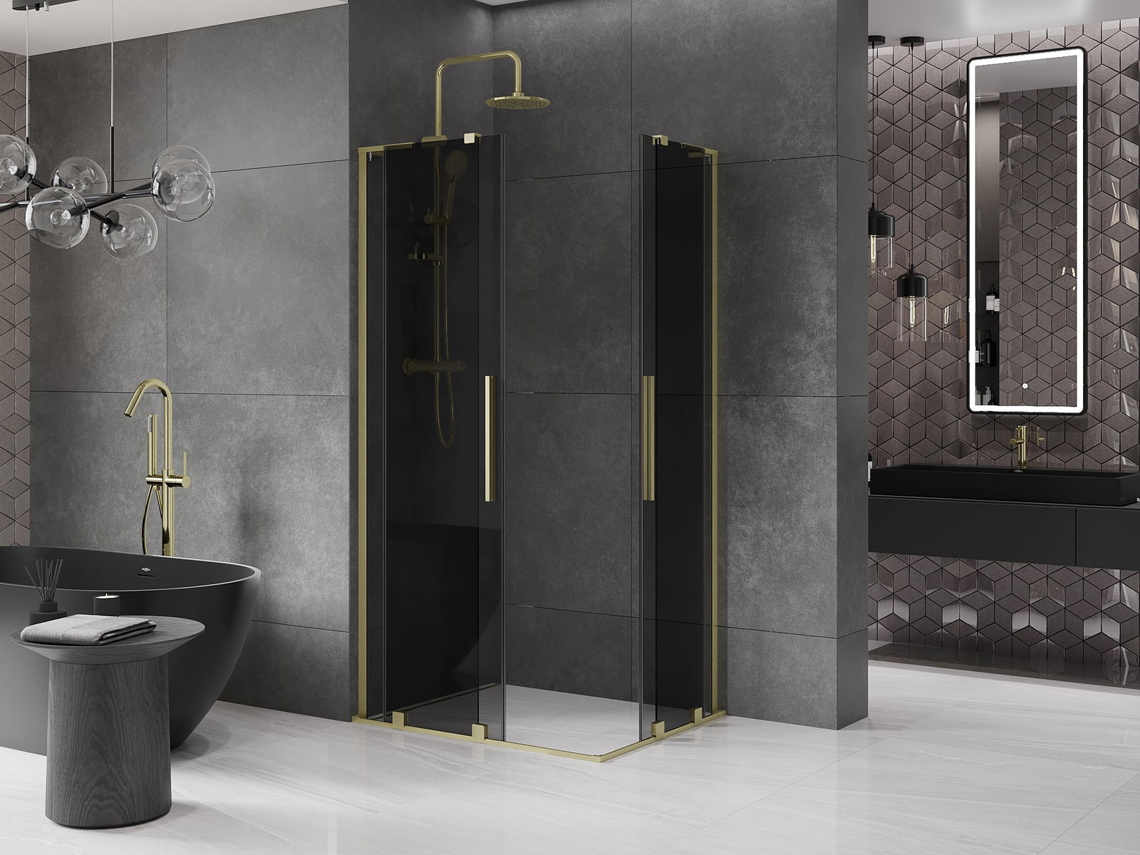 Mexen Velar L Duo sprchový kút posuvný 90 x 80 cm, grafit, zlatý kartáčovaný - 871-090-080-02-43-55
