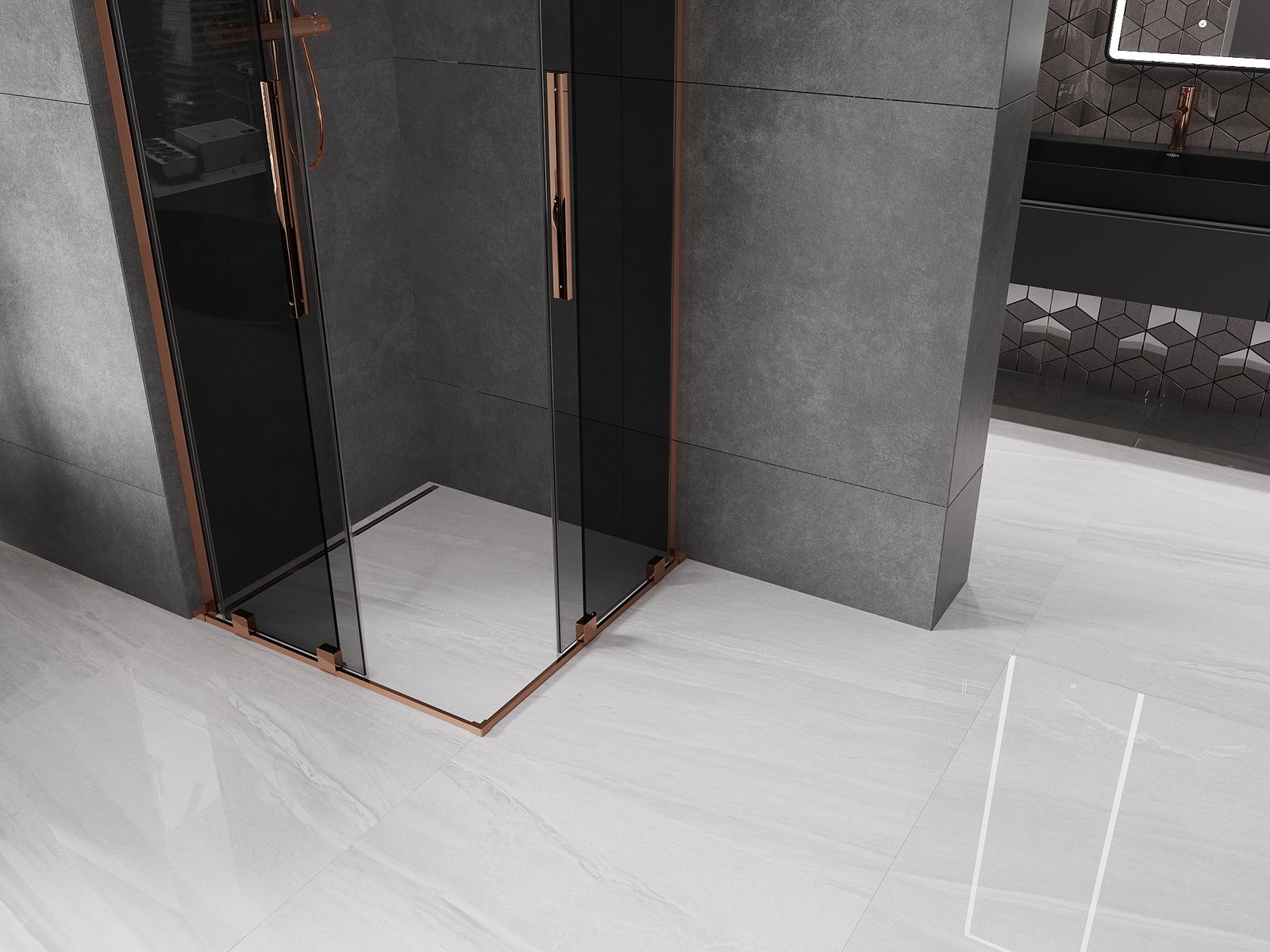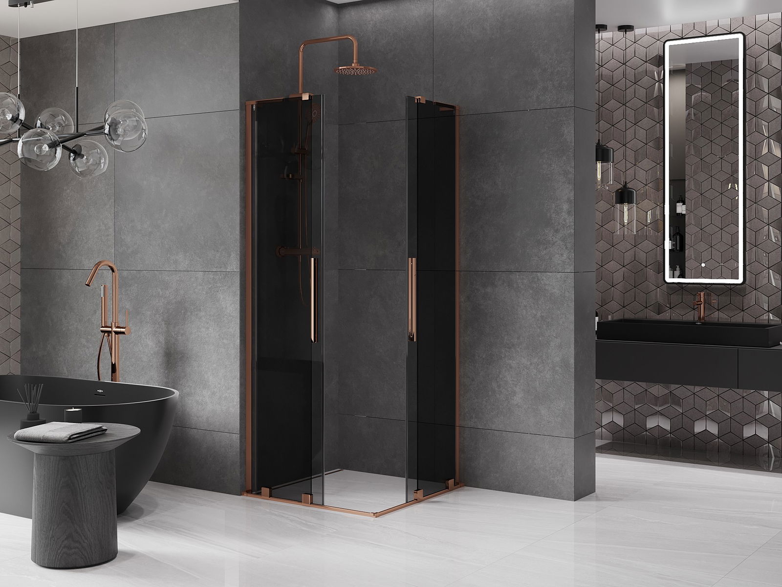 Mexen Velar L Duo sprchovací kút posuvný 90 x 90 cm, grafit, ružové zlato - 871-090-090-02-43-60