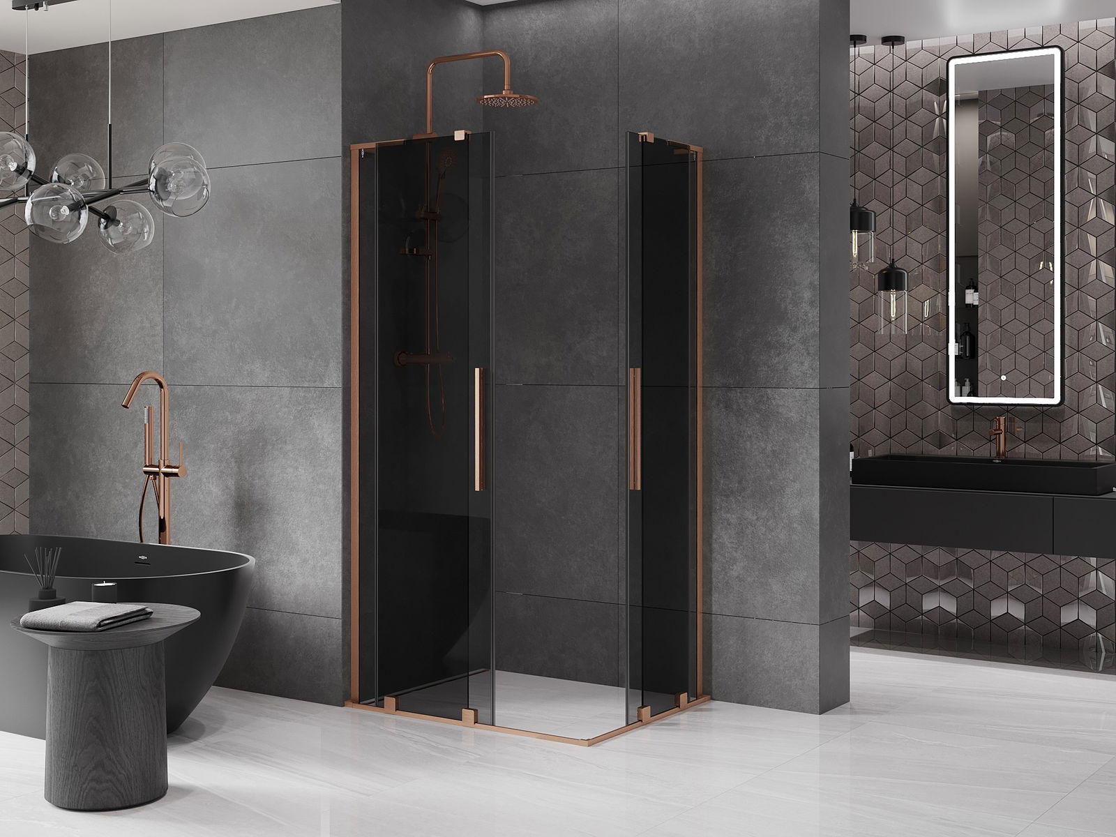Mexen Velar L Duo sprchový kút posuvný 100 x 90 cm, grafit, brúsená meď - 871-100-090-02-43-65