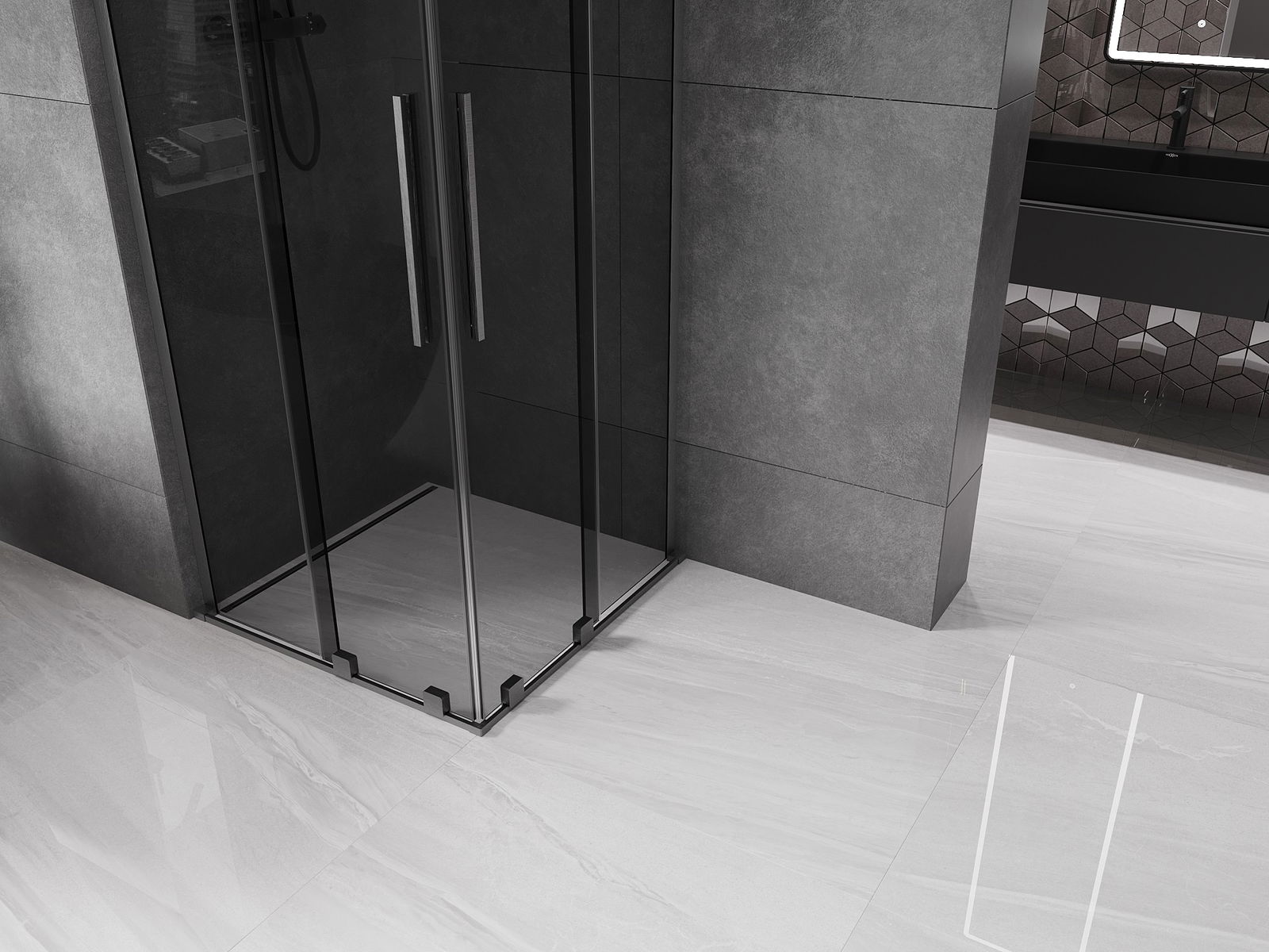 Mexen Velar L Duo posuvný sprchový kút 100 x 100 cm, grafit, brúsená zbraň sivá - 871-100-100-02-43-66
