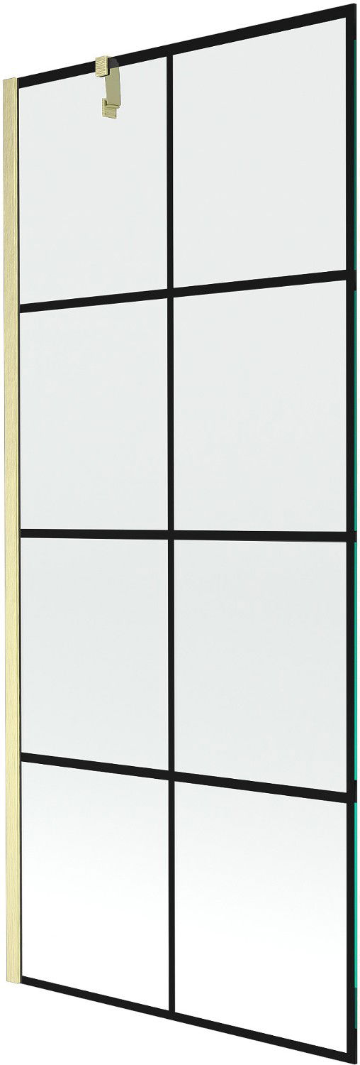 Mexen Next vanová zástěna s 1 křídlom 80 x 150 cm, čierna mriežka, zlatý brúsený - 895-080-000-00-77-55