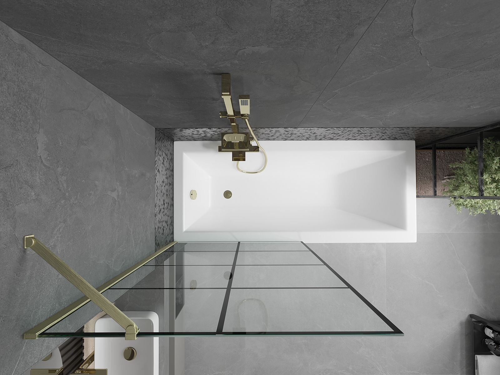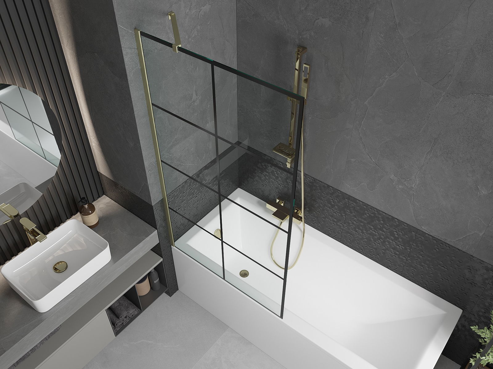 Mexen Next vaňová zástena, 1-krídlová 90 x 150 cm, čierna mriežka, zlatý kartáčovaný - 895-090-000-00-77-55