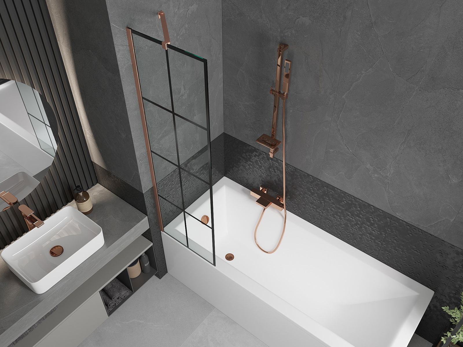 Mexen Next jednokrídlová sprchová zástena 50 x 150 cm, čierna mriežka, kartáčovaná meď - 895-050-000-00-77-65